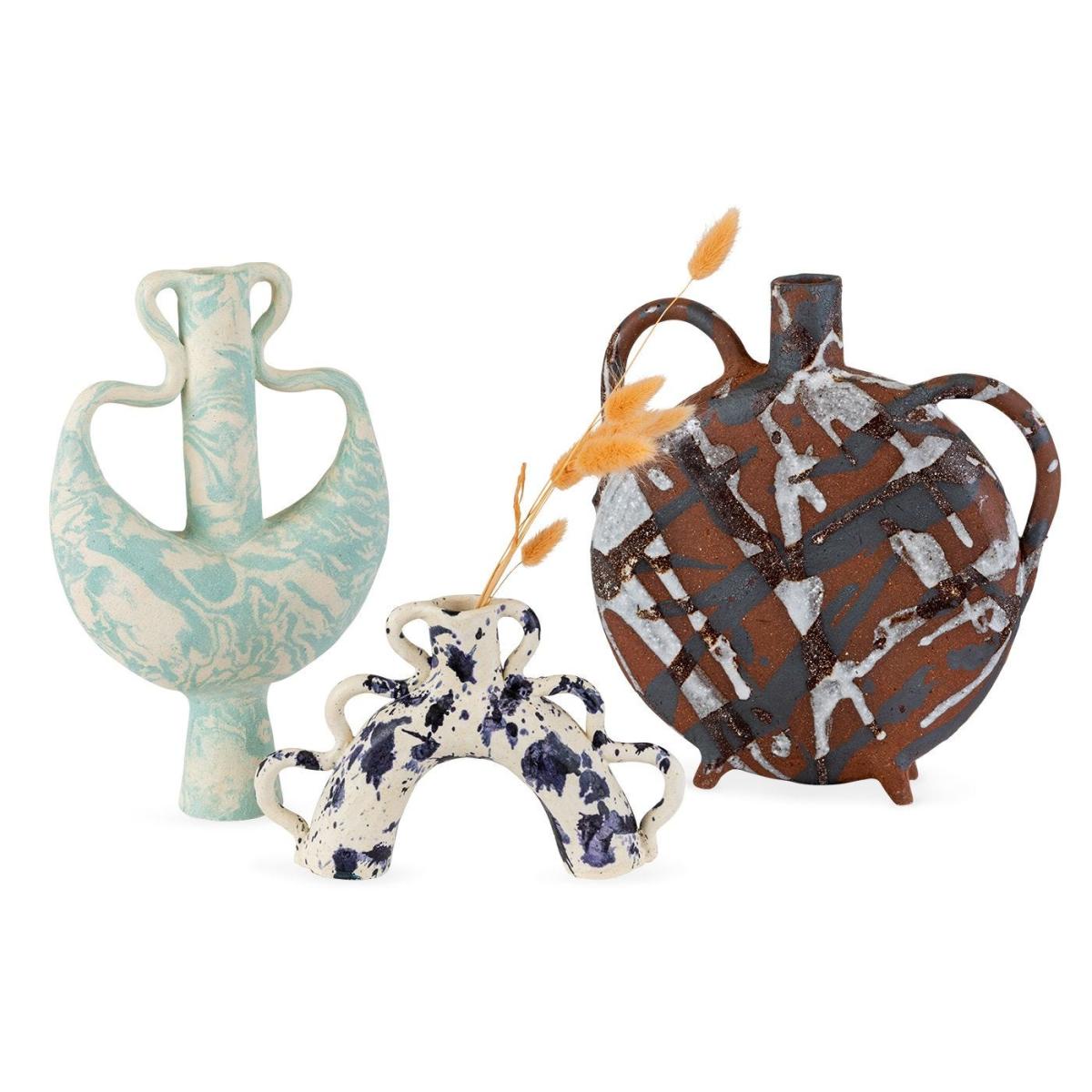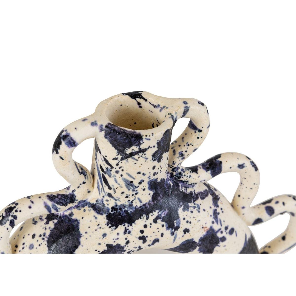 I love this vase for its bold, artistic feel and unique splash of colour. It works especially well in contemporary or eclectic interiors, where its sculptural shape can be a statement piece. The cobalt splash adds a pop of colour without overwhelming, making it versatile for both neutral and more lively colour schemes. Practical styling tips include pairing it with simple, greenery-based arrangements to let the vase shine or placing it on a shelf or side table where its distinctive form can be appreciated. Its playful design also makes it an ideal stand-alone decorative object, adding an artistic touch to any space.