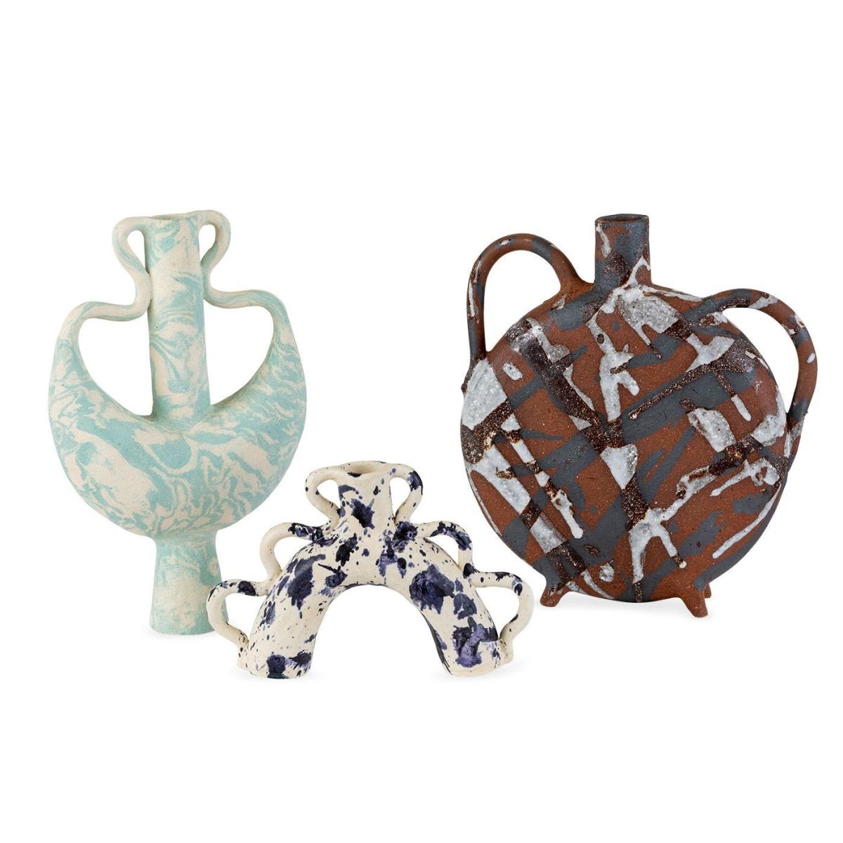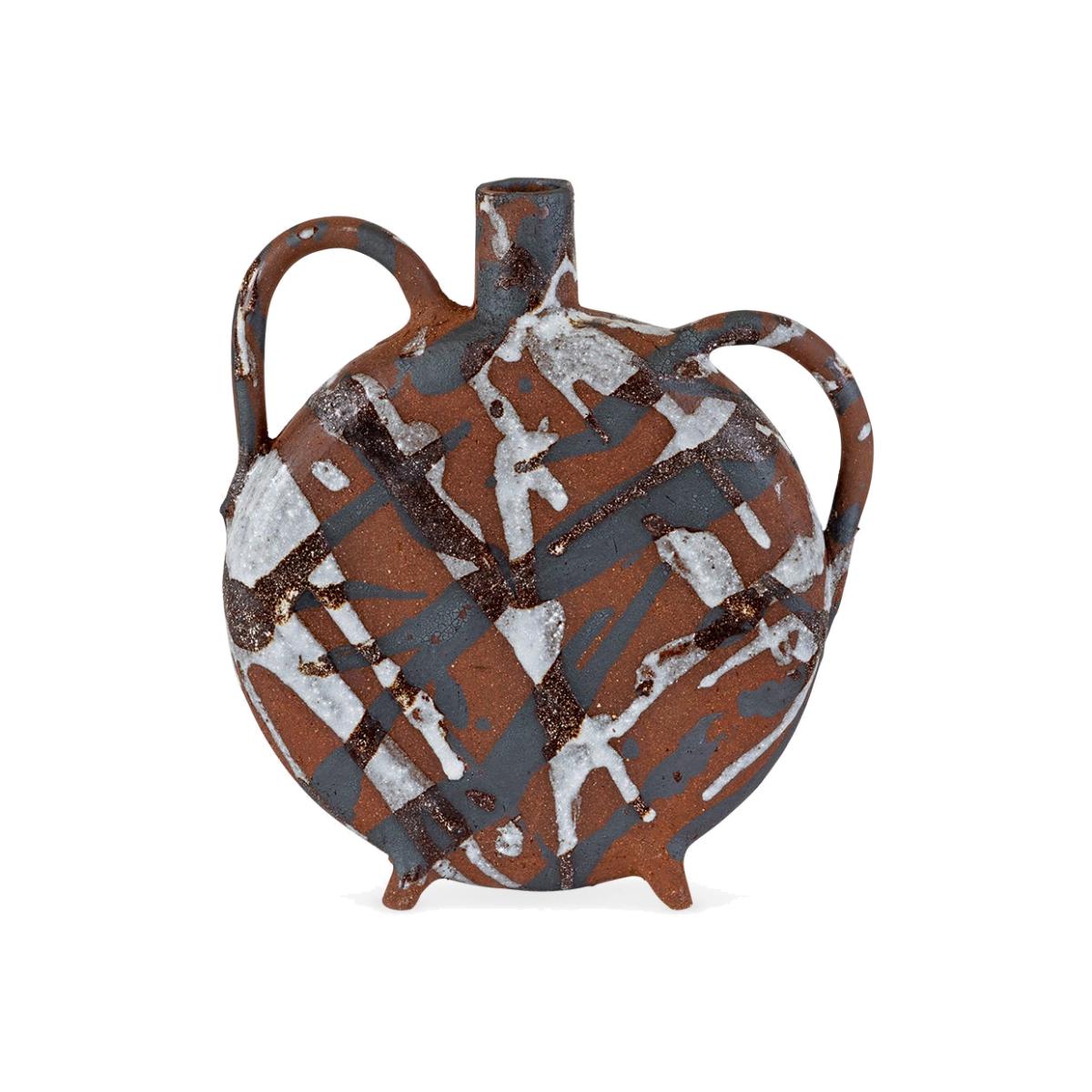 Up-and-coming ceramicist Talia James has created a future classic in the form of the Round Vase: its shape is inspired by ancient water bottles while its terracotta surface is modernised by splashing an oxide wash and white glaze that creates an overlapping effect. With every pattern unique, it’s a bold and beautiful object.