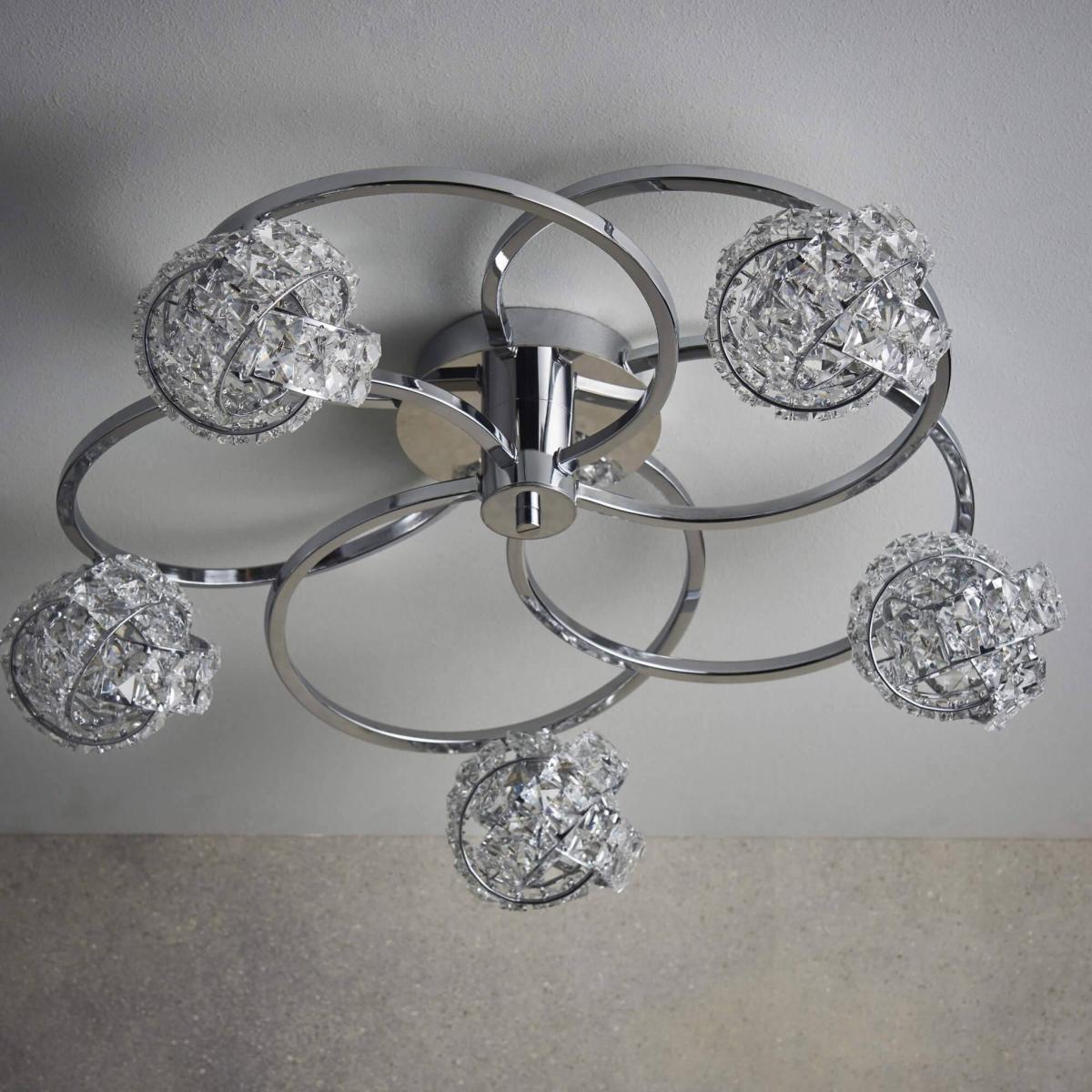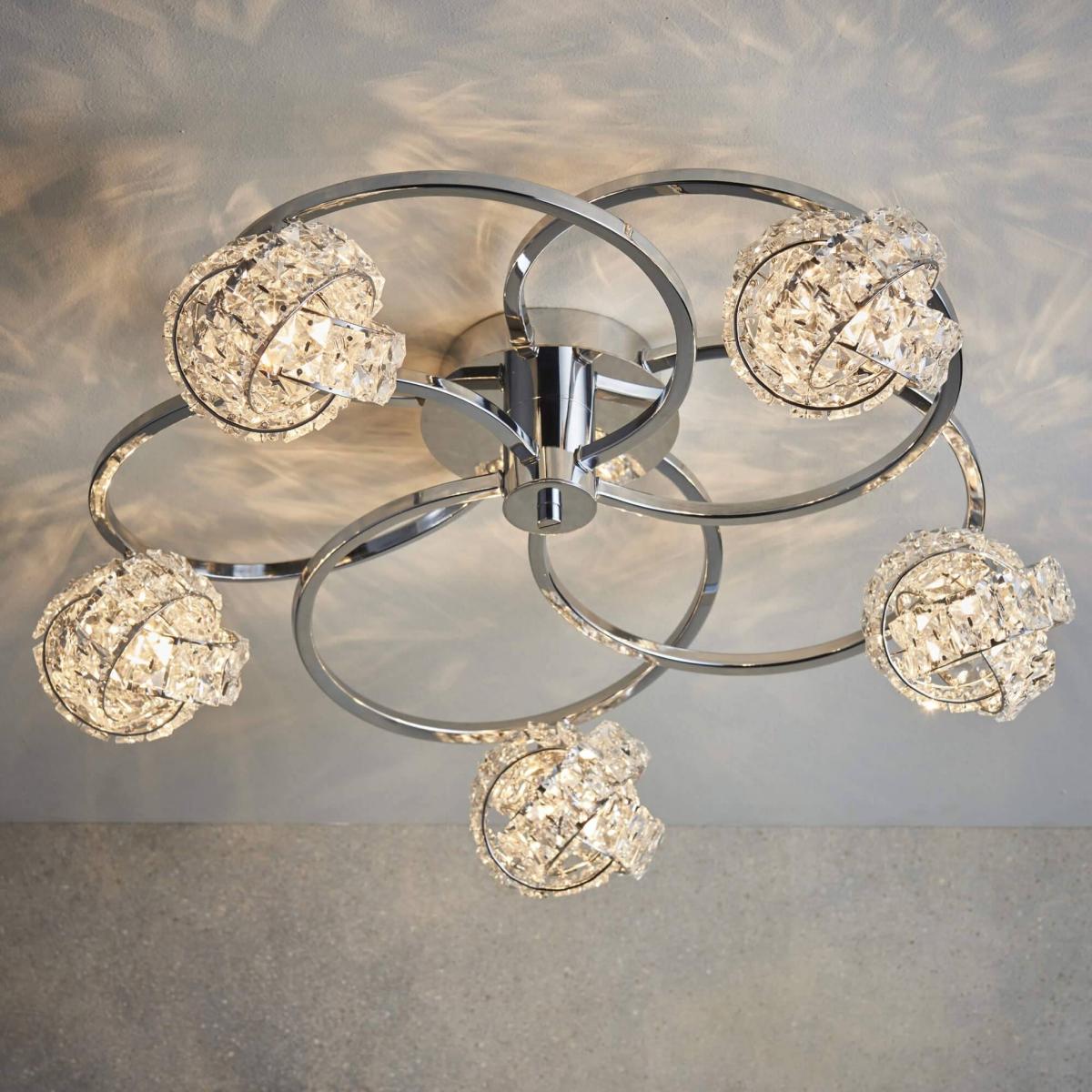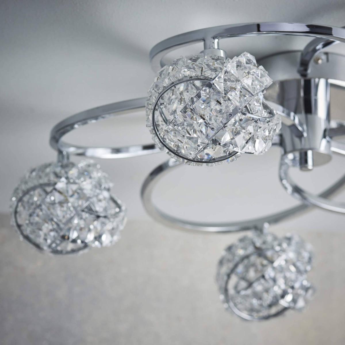 Contemporary Semi Flush Ceiling Light with crystal detail shades and polished chrome finish. The Talia ceiling light features clusters of inter-linked clear glass crystals, carefully joined to polished chrome plated looping arms, creating a decorative sculptural look. This eye-catching light is both practical and stylish and looks at home in a wide range of interiors. Pair with G9 LED lamps for the perfect decorative light effect. Ideal for hallways, living rooms and bedrooms. We recommend using our 3w LED G9 capsule bulbs which are a great replacement for standard halogen bulbs. Contemporary Semi Flush Ceiling Light with crystal detail shades and polished chrome finish. The Talia ceiling light features clusters of inter-linked clear glass crystals, carefully joined to polished chrome plated looping arms, creating a decorative sculptural look. This eye-catching light is both practical and stylish and looks at home in a wide range of interiors. Pair with G9 LED lamps for the perfect decorative light effect. Ideal for hallways, living rooms and bedrooms. We recommend using our 3w LED G9 capsule bulbs which are a great replacement for standard halogen bulbs.