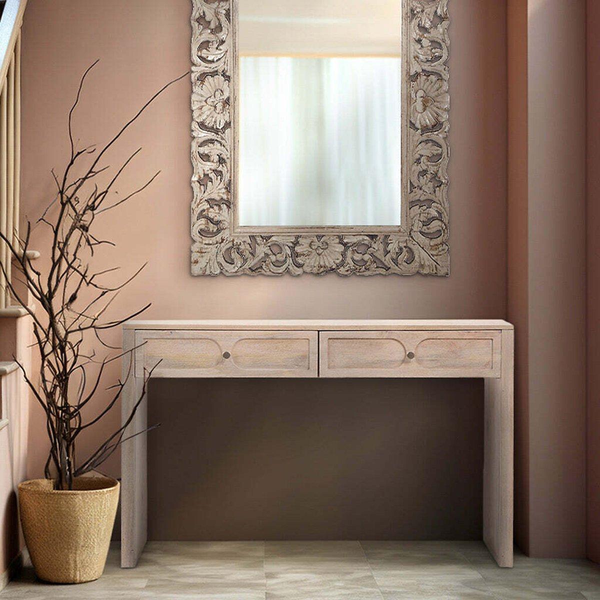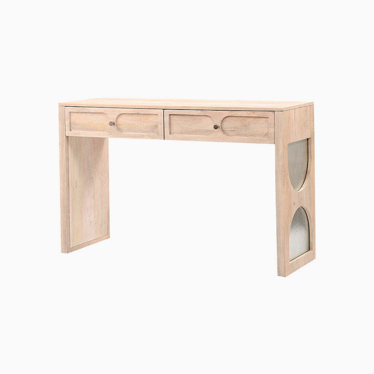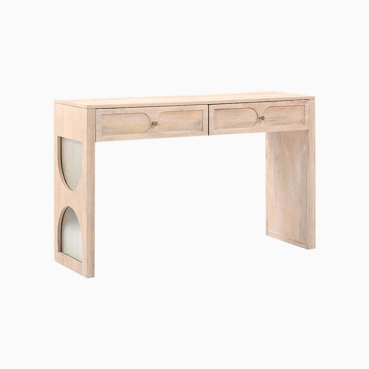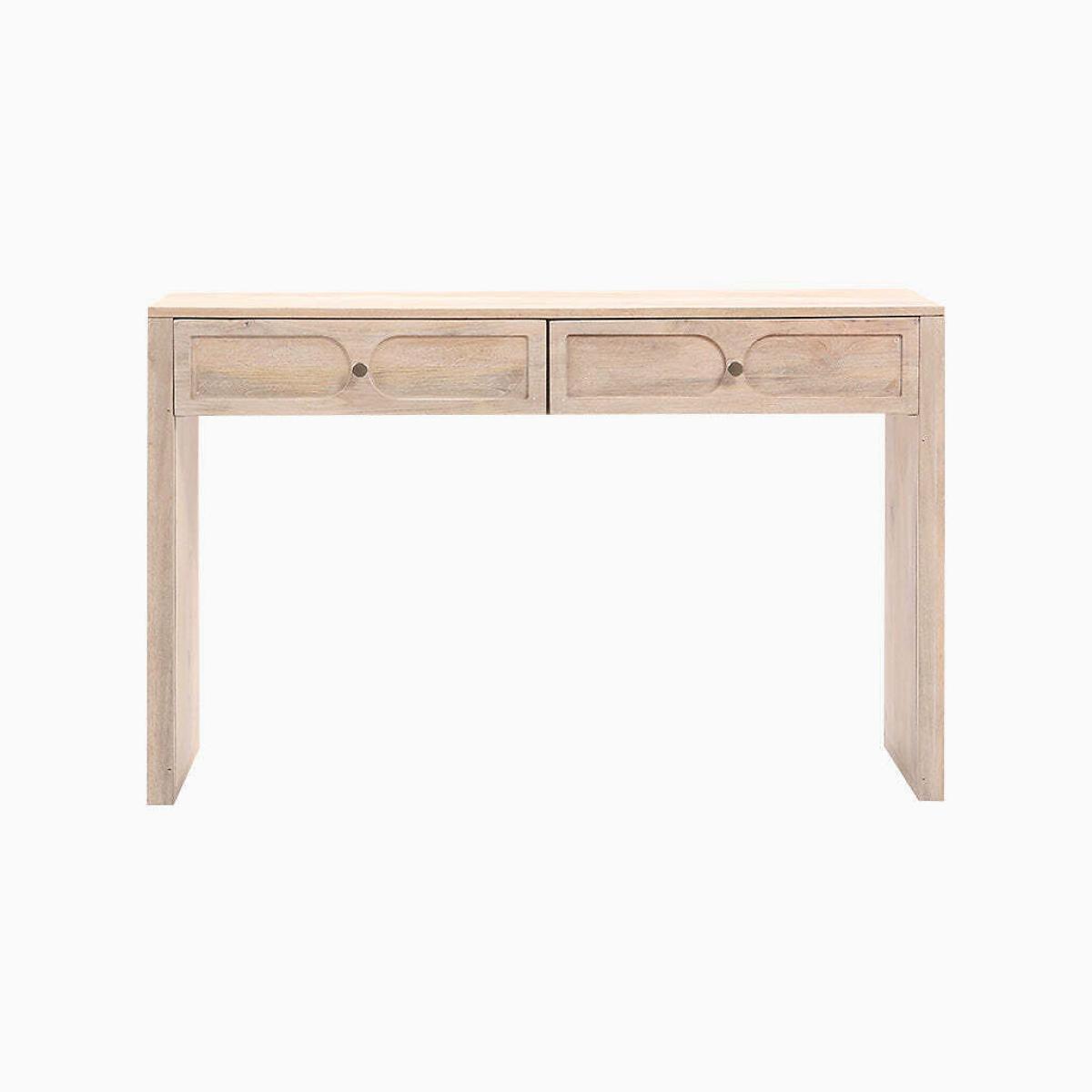 The Talin desk and console table effortlessly blends elegance with functionality. Crafted from premium mango wood, its versatile design adapts seamlessly as a living room console, hallway accent, or dressing table. A generous tabletop paired with two large sliding drawers offers ample space for styling and storage. Finished naturally, Talin’s understated elegance highlights the beauty of its craftsmanship and design. Product details• Mango wood• Number of drawers:2• Full assembly required. Product Composition - Mango Wood. Product Dimensions - 120 cm x40 cm x76 cm , Weight - 29.86 KG• Internal drawer: 10 x 50 x 32 cm• Clearance to floor: 59 cm Package Dimensions - 126 cm x 50 cm x 35 cm, Weight 34.98 kg. This product will be dispatched by one of our trusted suppliers. You’ll be contacted by their selected courier about your delivery.