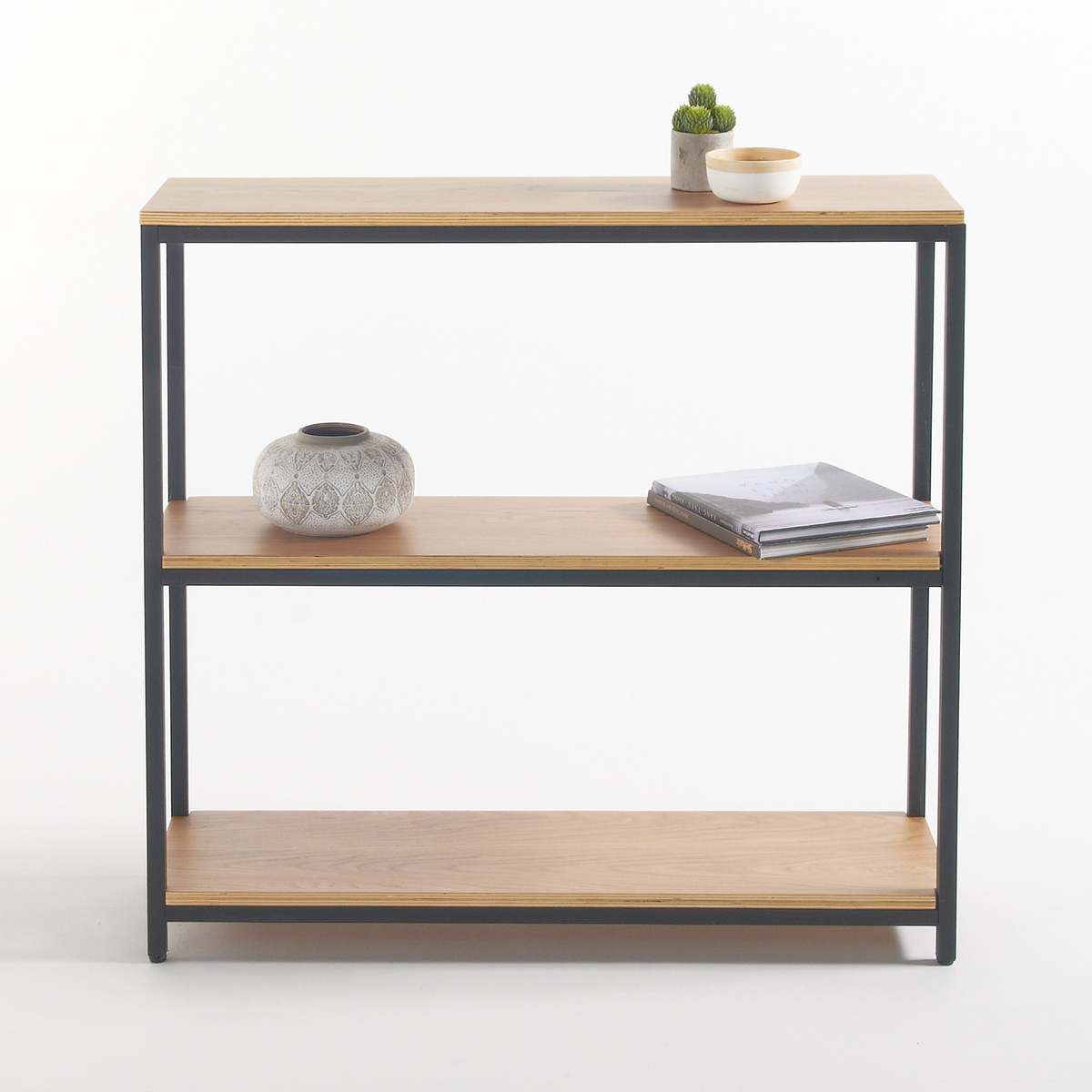 Talist low shelf unit in metal and wood with 3 shelves. A modern, understated design, this shelf unit looks wonderful in the entrance hall, a bedroom or even the garage.