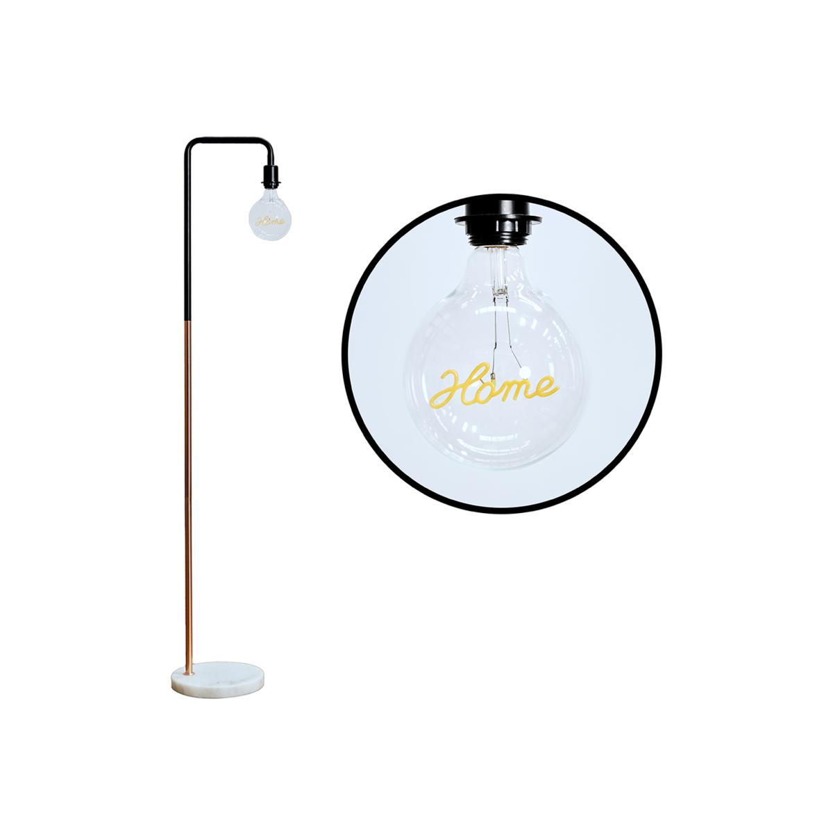 Talisman Black and Copper Floor Lamp with 2W LED Vintage Home Bulb Featuring a weighted white marble base, the Talisman with 2W LED "Love" bulb is a beautiful statement piece for any modern living space The minimalist design is simple and on-trend and is sure to be a talking point at your next dinner party! Please note that due to marble being a natural material the base of the lamp will vary in colour.