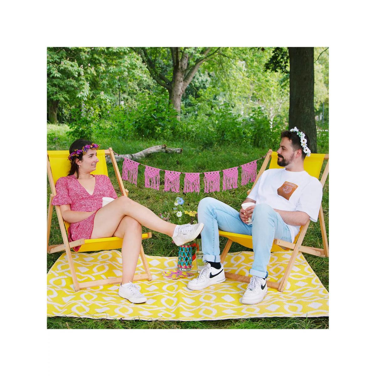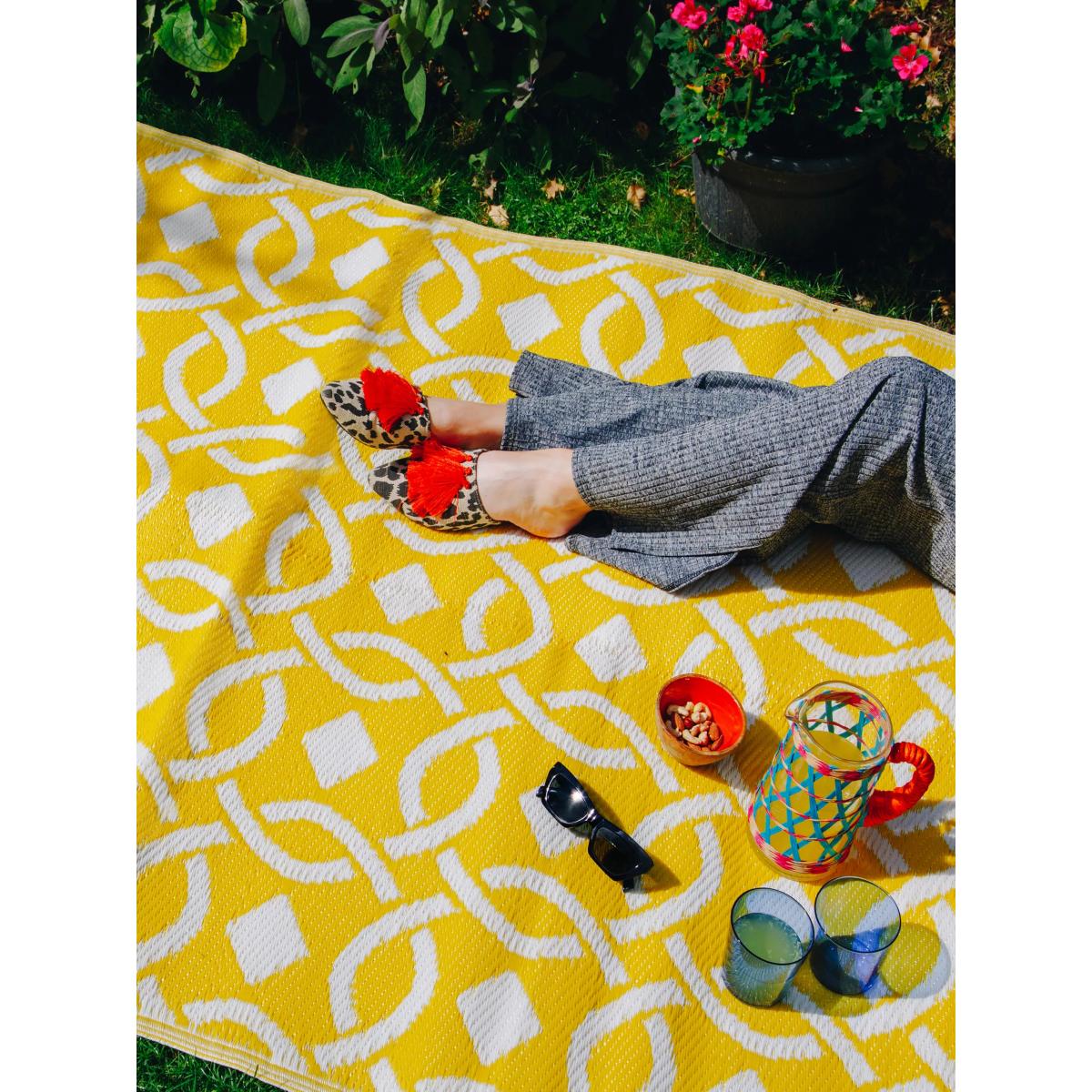This colourful outdoor rug is perfect for a summer soiree. Add a touch of colour to your garden, use at a picnic or indoors for bathrooms, kitchens and utility rooms. Made from polypropylene, it's lightweight and fully waterproof, making it great for kids, pets, drink spills or whatever life throws at it.