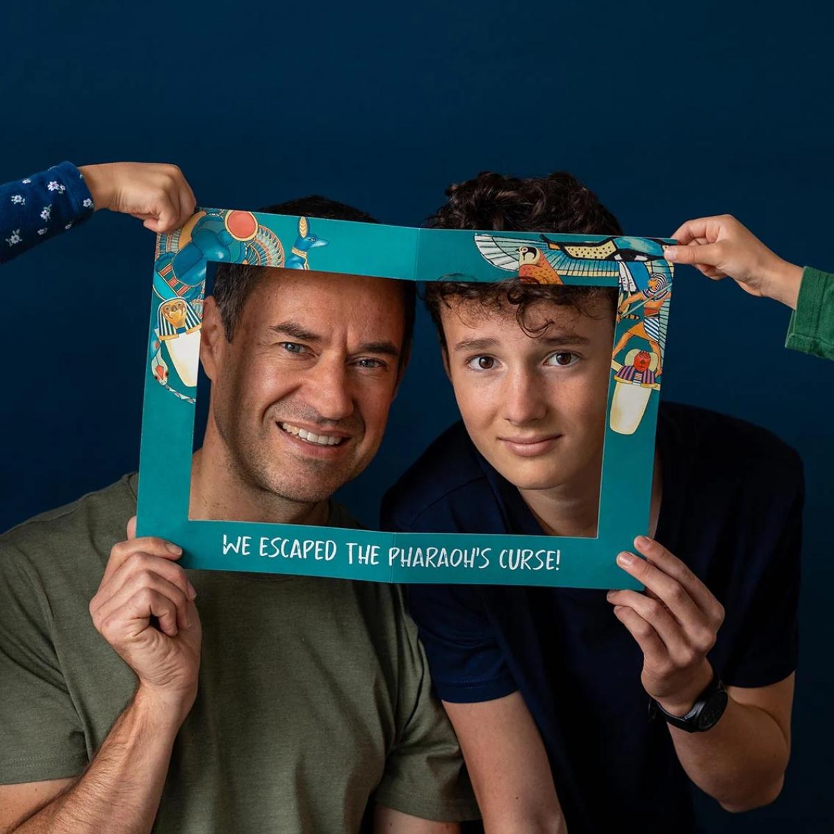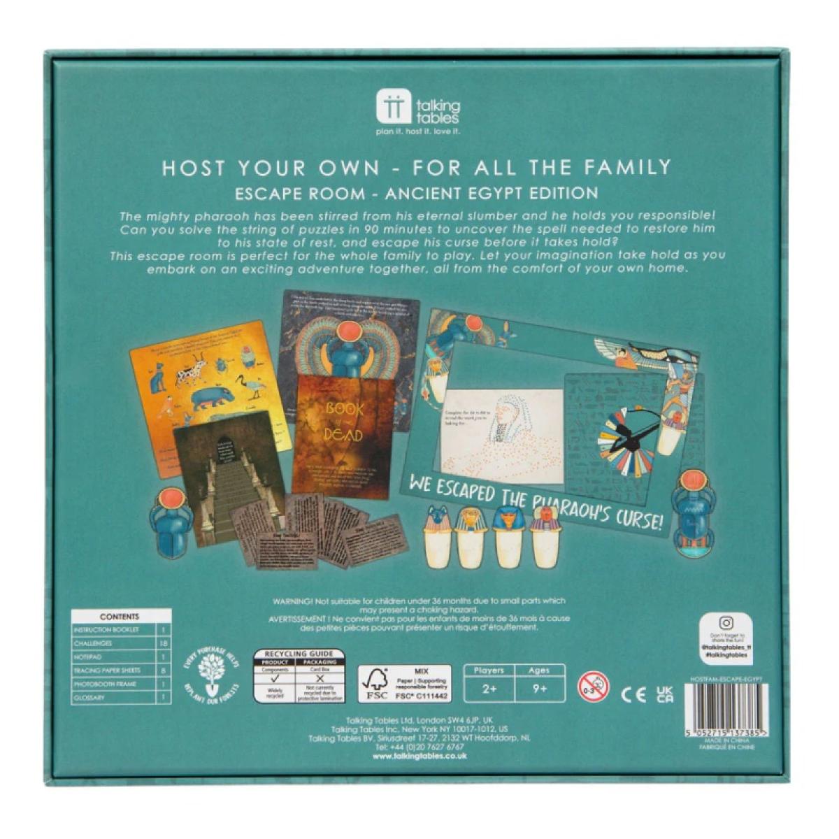 The mighty pharaoh curses all who disturb him... and in this escape room, that's you! Escape to Egypt, land of tombs, magic, sand dunes and disgruntled ancient mummies. For the next 60 minutes, you and your team must put the pharaoh back into his eternal slumber by solving the puzzles and revealing the spell to send him back to the afterlife. This high-stakes, immersive adventure game is an exciting family activity perfect for the chilly winter months. Designed for younger players, this escape room has an easy difficulty level and is suitable for ages 9+. A smartphone, tablet or watch is required for the interactive elements of this game. Suitable For: Recommended for age 9+ 2+ players Contents includes: An Instruction booklet 12 x Game Puzzles 8 x Tracing Paper Sheets 1 x Notepad 1 x Interactive Ending 1 x Photobooth Frame.
