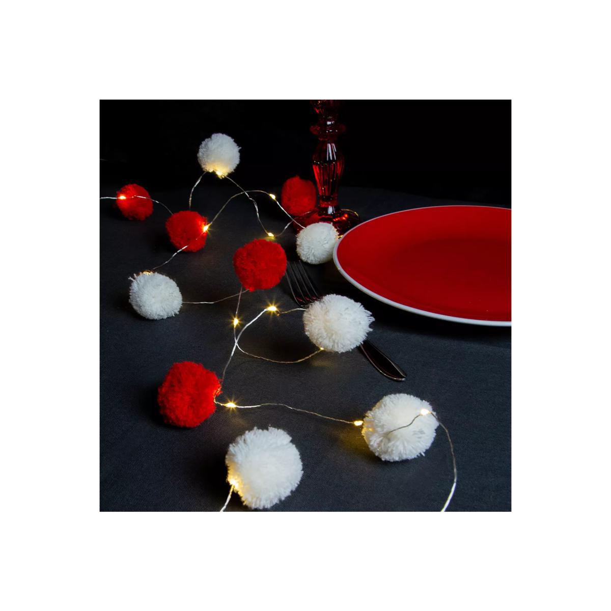 These colourful Red and White Pom Pom String Light by Talking Tables are the perfect addition to your festive décor! Use as Christmas decorations for your dinner table, mantlepiece, banister, bedroom or table centrepiece! Each pack contains a 2m (6.5ft) wire with 20 LED lights and red and white fabric pom poms. Size: 2m (6.5ft) length. Battery type 3 x AA, batteries not included.