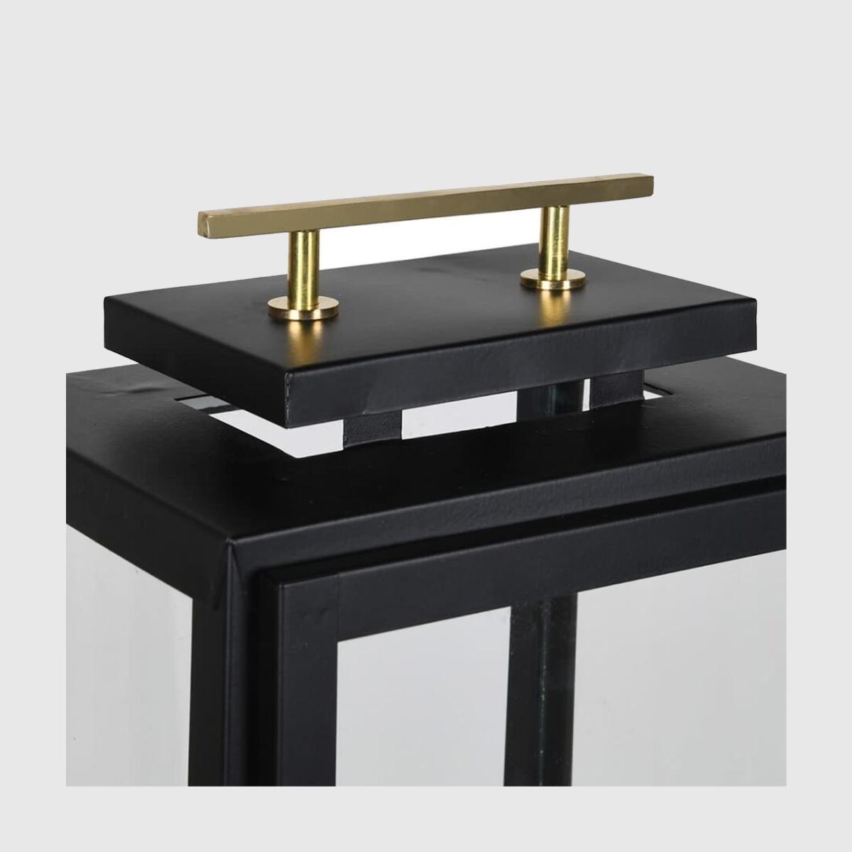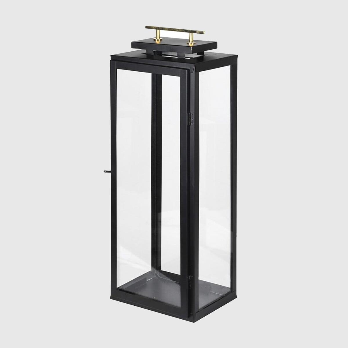 For those seeking to inject a contemporary flair into their home decor, the Tall Black Metal Lantern is the perfect choice. An eye-catching lantern featuring a sleek matt black finish, complemented by a stylish gold handle on top. With a glass door at the back of the lantern, it's effortless to insert a contrasting collection of pillar candles or a single statement candle, making it a versatile addition to your interior decor.