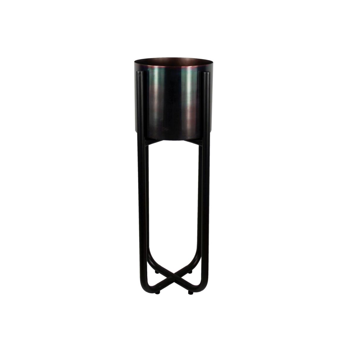 Set of a metal planter stand and separate metal planter. Can be used together or separately. It has four small adjustable twist feet on the bottom. Material Powder-coated metal. Material Powder-coated metal. The colour of the planter is a beautiful iridescent rainbow colour with numerous tones and highlights. These are all handmade in a rustic finish with intentional minor imperfections. As a handmade product, there are minor differences from one to another and each one is slightly unique. Intended for indoor use. This design is available in a choice of colours.