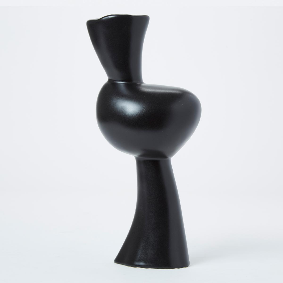 Contrast neat candlesticks with the abstract shape of Anissa Kermiche's small black Blobby Candlestick. Fashioned from ceramic in Portugal and finished with a striking matt black glaze, the curvaceous sculpture can nestle a candlestick or be left alone as a standalone artwork. Parisian Anissa Kermiche's eponymous fine jewellery and homeware brand is adding confidence and artistic expression to everyday life. Inspired by successful female role models as well as artists such as Alexander Calder and François Morellet, Kermiche reflects their boldness in her striking yet elegant designs. Care instructions: Wash with lukewarm water and air dry. Do not scrub.