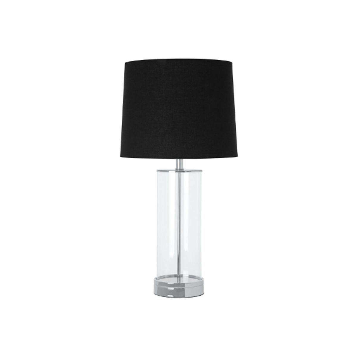 The clear glass base has an empty vase look, complemented by the chrome plate and tapered black fabric shade. with a contemporary, formal look, the lamp emits a soft glow to the surrounding space, adding a refined air to your décor. The Ludo table lamp is an exquisite feature for a modern or office setting. Bulb not included. Bulb required: E27 40WDimensions:. H 75 x W 38cm. This product will be dispatched by one of our trusted suppliers. You’ll be contacted by their selected courier about your delivery.