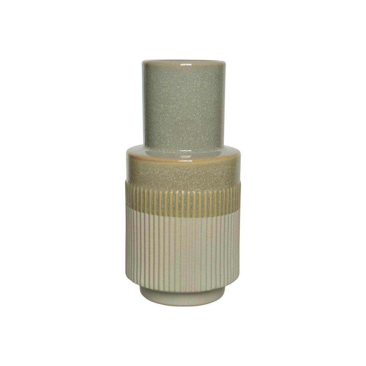 Ideal for enhancing a wide range of décor styles, this elegant Tall Etched Ceramic Vase features a glazed light grey finish adding vintage charm, and complete with neutral striped detailing for a contemporary touch. Perfect in a display of ornaments, or on its own adding some neutral artificial stems or flowers to elevate.