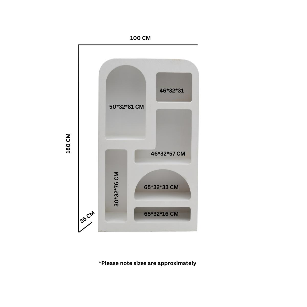 The GEO Bookcase is more than just storage; it’s a statement piece that blends modern design with bohemian flair, making it a striking addition to any home. Featuring unique geometric cutouts and sculptural shelving, this bookcase adds depth, dimension, and artistic appeal to any room. With six fixed shelves, this bookcase provides ample space to showcase books, decorative pieces, plants, and more, keeping your space stylish and organized. Crafted with a Duco-painted and lacquered surface, the crisp white tone and smooth texture create a refined yet contemporary look that complements various décor styles. Designed for effortless integration into your space, this bookcase comes fully assembled and ready to use, ensuring convenience and durability. The GEO Bookcase is a perfect fusion of style and function, offering a sculptural, eye-catching presence while serving as a practical storage solution. Whether placed in a living room, bedroom, or office, this bookcase enhances any interior with its modern elegance and boho-inspired charm. Dimensions:W100 x D35 x H180 cm Product weight: 69kg Storage: 6 open layers Finish: Stone Material: Engineering Wood Assembly required: No Package dimensions: Box 1: W187 x D42 x H107 cm