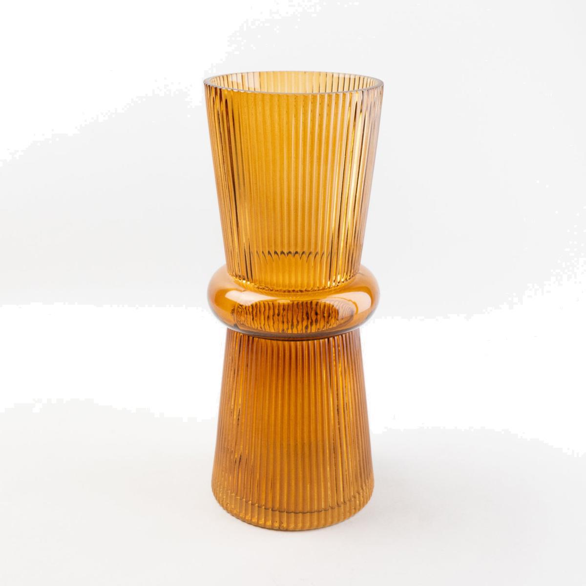 Made from glass, this vase with a stunning ridged design, illustrated by the size will complement an array of home decors, along with its beautiful, modern colourway.