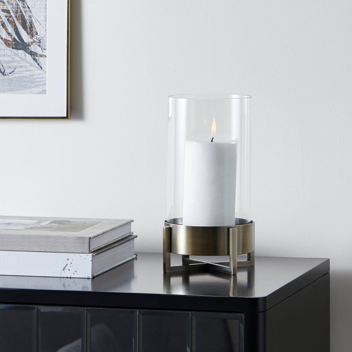 Boasting a stunning bronze effect, this tall hurricane is perfect for holding pillar candles. With a contemporary design, this hurricane adds a simple yet stylish feel to any room in your home.