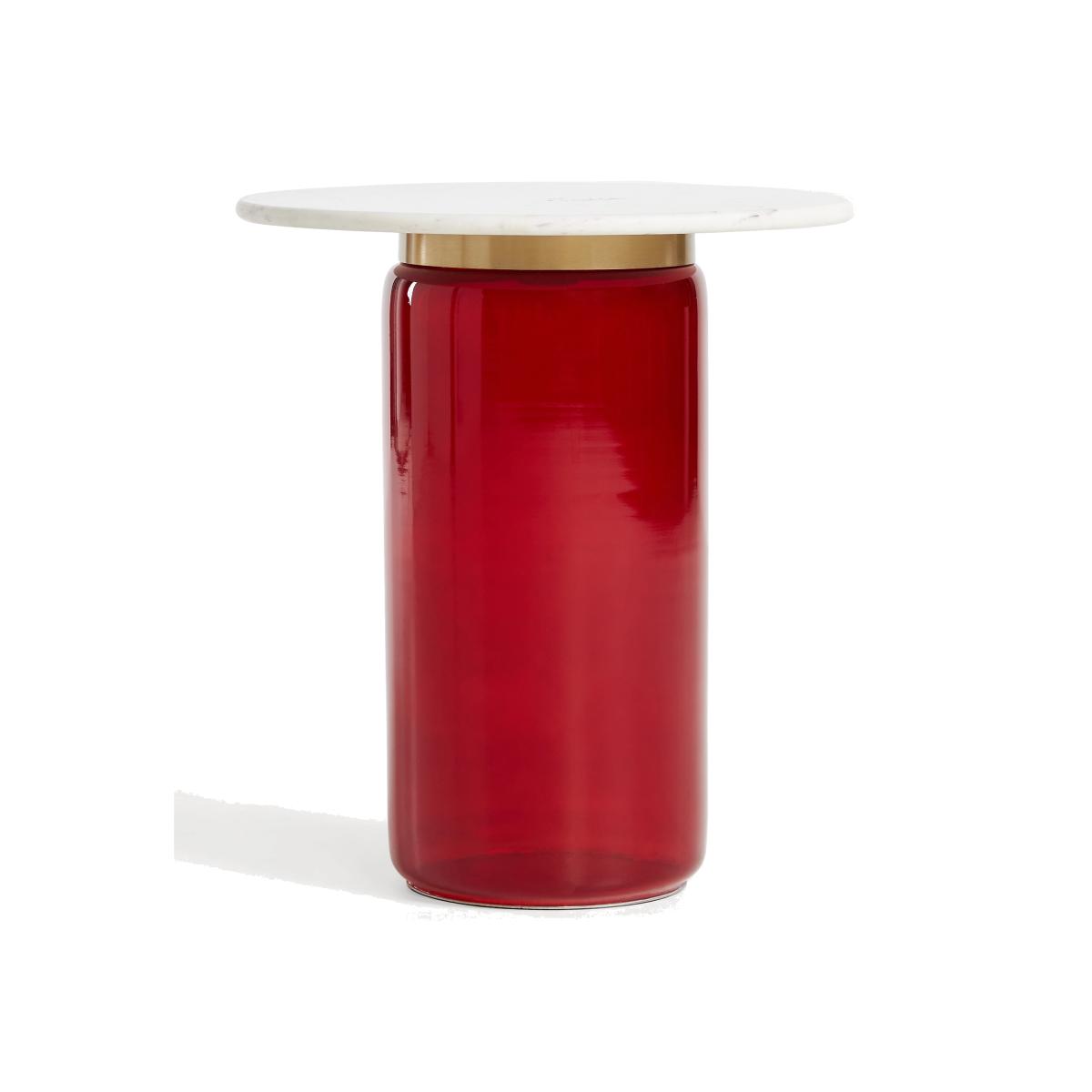 Beautifully crafted of gleaming glass and smooth marble, this chic side table lends an effortless elegance to bedsides and couch ends alike. * Glass side table featuring a marble top and brushed-brass detailing * Wipe clean with soft cloth. Avoid using chemical cleaners * This piece is intended for indoor use * No assembly required * Imported