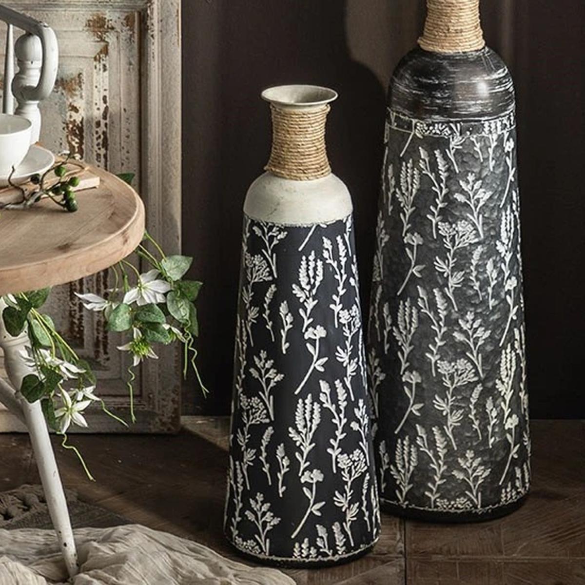 Tall Iron Flower Vase for Floor Display (Small) - Grey