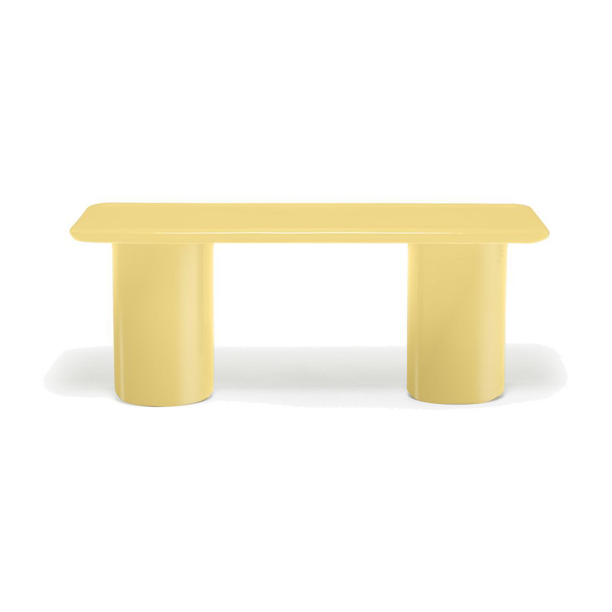 I love this yellow coffee table for its bold, modern aesthetic that can instantly lift and brighten a living space. Its rectangular shape and sturdy cylindrical legs make it versatile, working well in contemporary, retro, or minimalist interiors. It’s a particularly good choice if you want to introduce a pop of colour without overwhelming the room - pair it with neutral sofas or soft textiles and use accessories like colourful books, vases, or trays to style it practically. For a balanced look, keep a clean surface and consider stacking a few statement books or decorative objects on top. Thanks to its lively hue and simple form, it can serve as a functional focal point in your living room or lounge area.