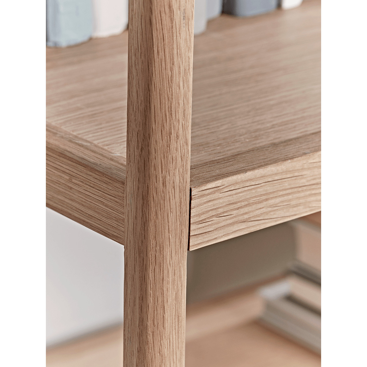 Carefully handcrafted from oak and oak veneer, our fabulous unit has a smooth finish top and visible wood grain details. With six generous, deep shelves and a strong, angular yet slender frame, its a beautiful way to store your books and other decorative accents.