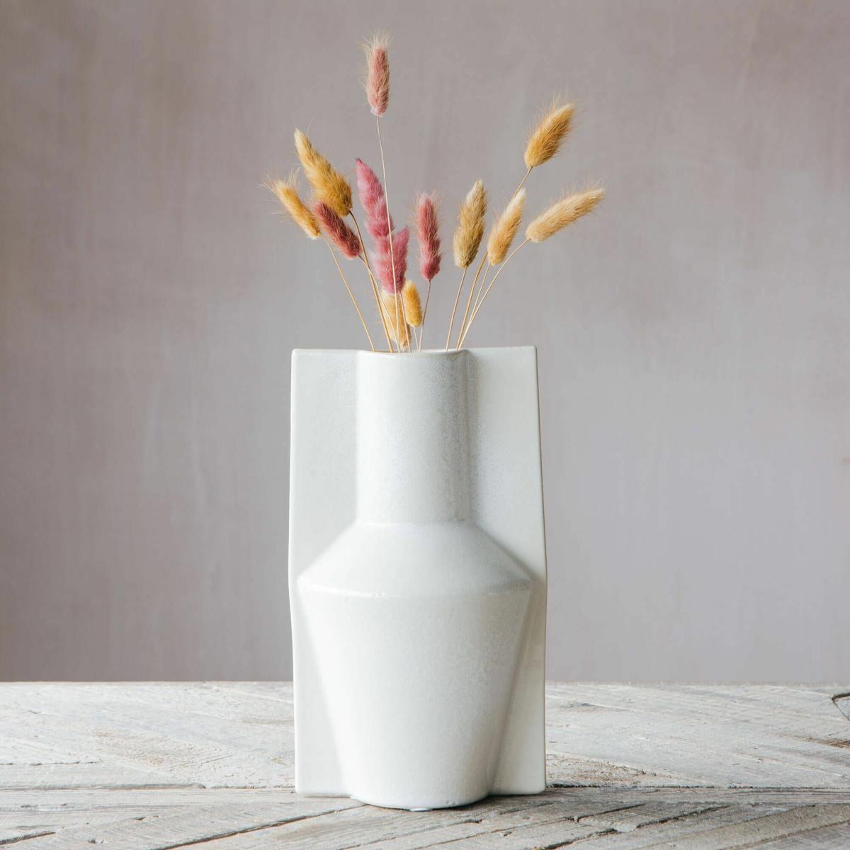 Fashion a creative bouquet of dried flowers within the simple minimalist bubble design of this tall ceramic vase.