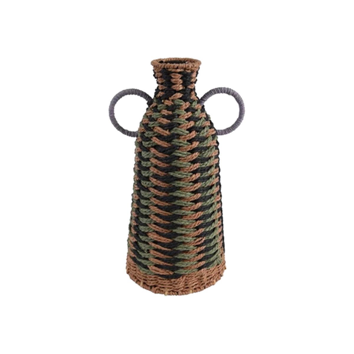 The Tall Multicoloured Rattan Vase is a chic addition to any space, featuring an entwined pattern in stylish green, black, and brown tones. Whether placed on a shelf, by a fireplace or on a windowsill, it adds an elegant touch, whether filled with artificial foliage or left empty as a statement piece.
