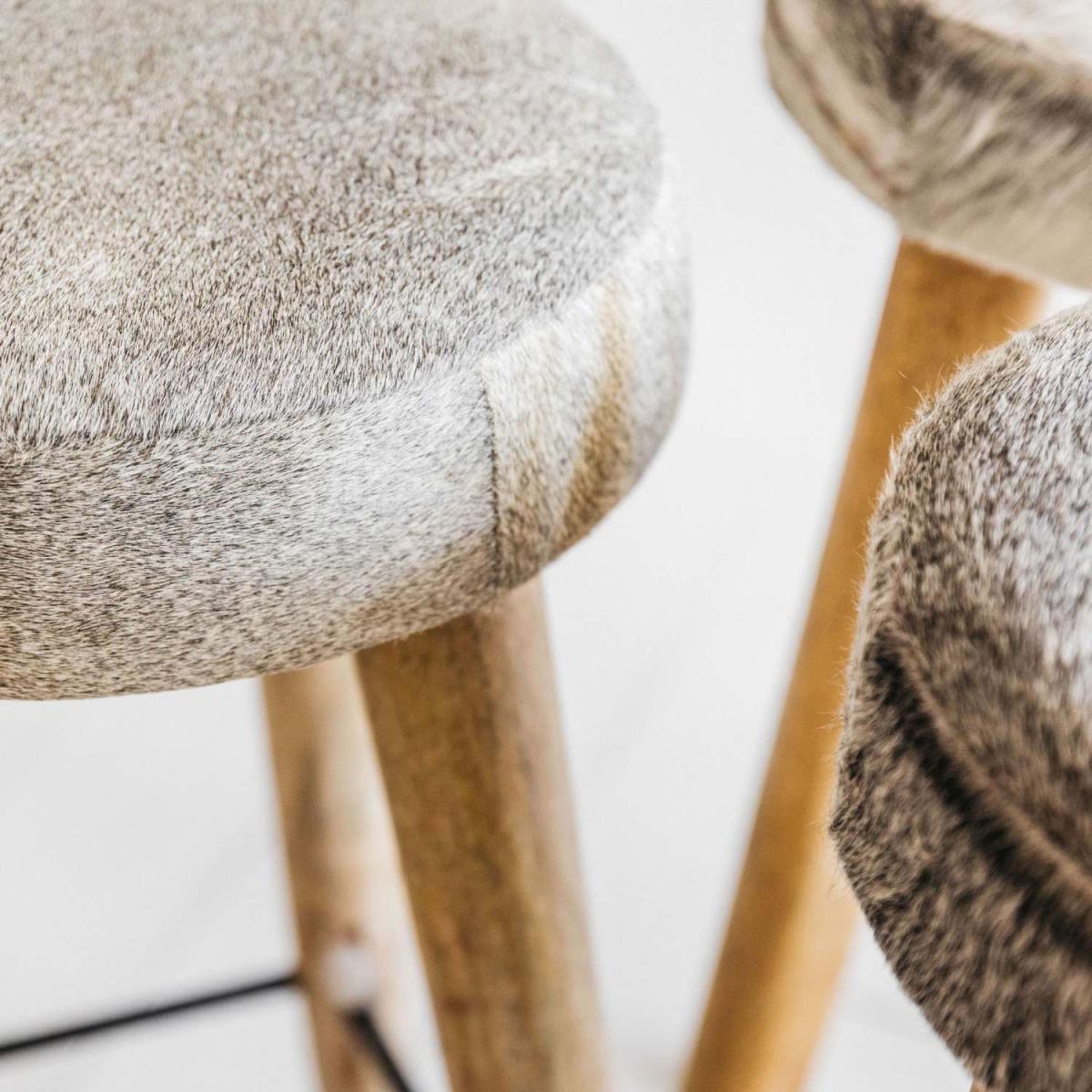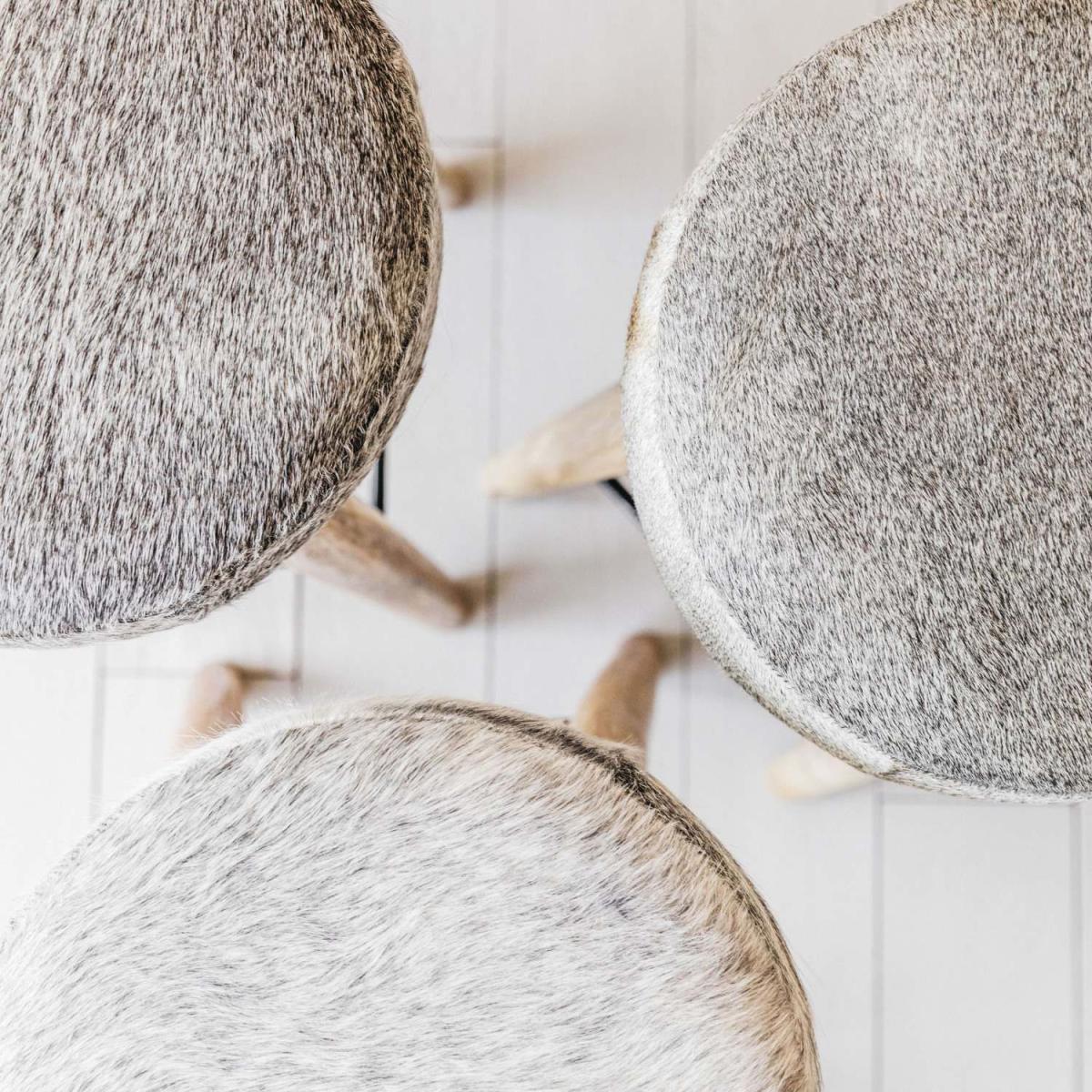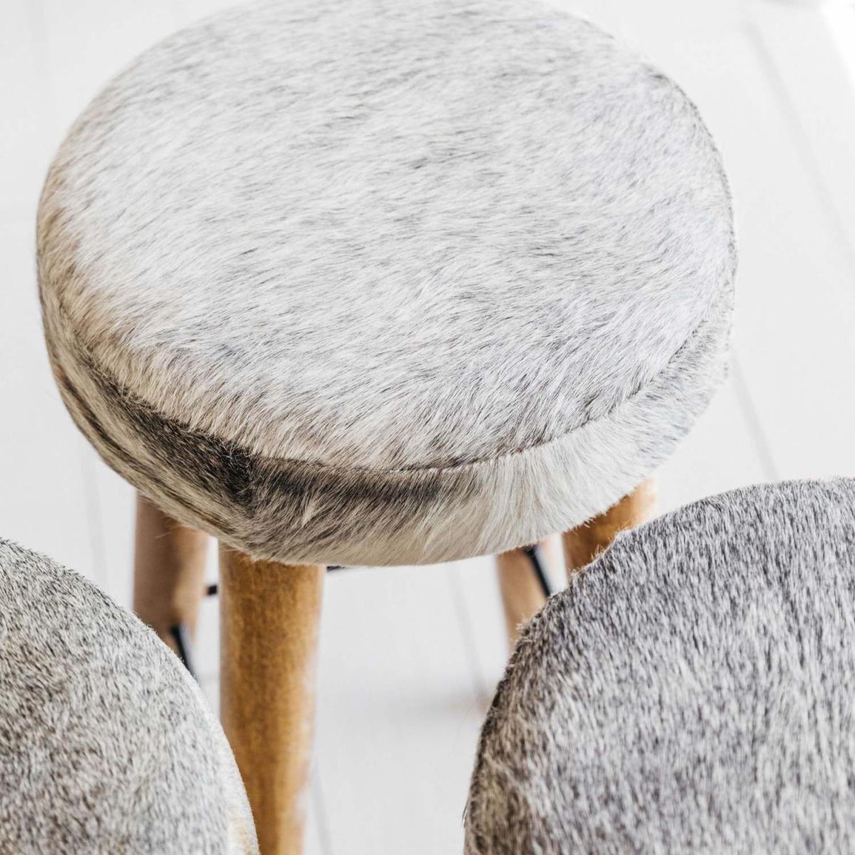 I love this stool for its blend of rustic charm and understated sophistication. The tall, round shape with the grey cowhide seat adds texture and visual interest, making it versatile for various interiors. It's especially effective in casual kitchens, breakfast bars, or even a country-style pub setting. Practical styling tips include pairing it with wooden or metal accents to enhance its natural look, or using it as a statement piece in a neutral colour scheme. It's sturdy yet lightweight, making it easy to reposition, and the cowhide provides a durable surface that’s both stylish and practical for everyday use.