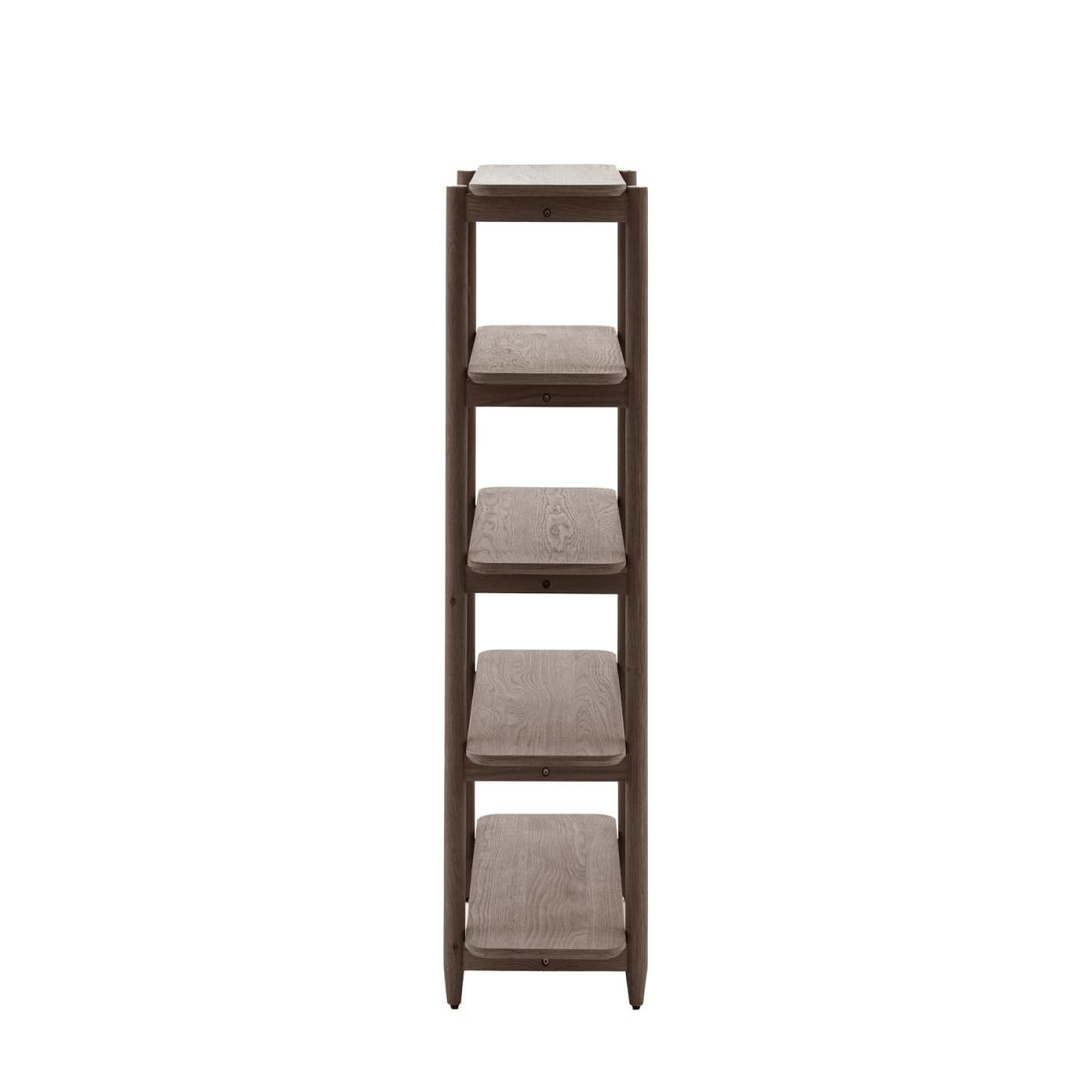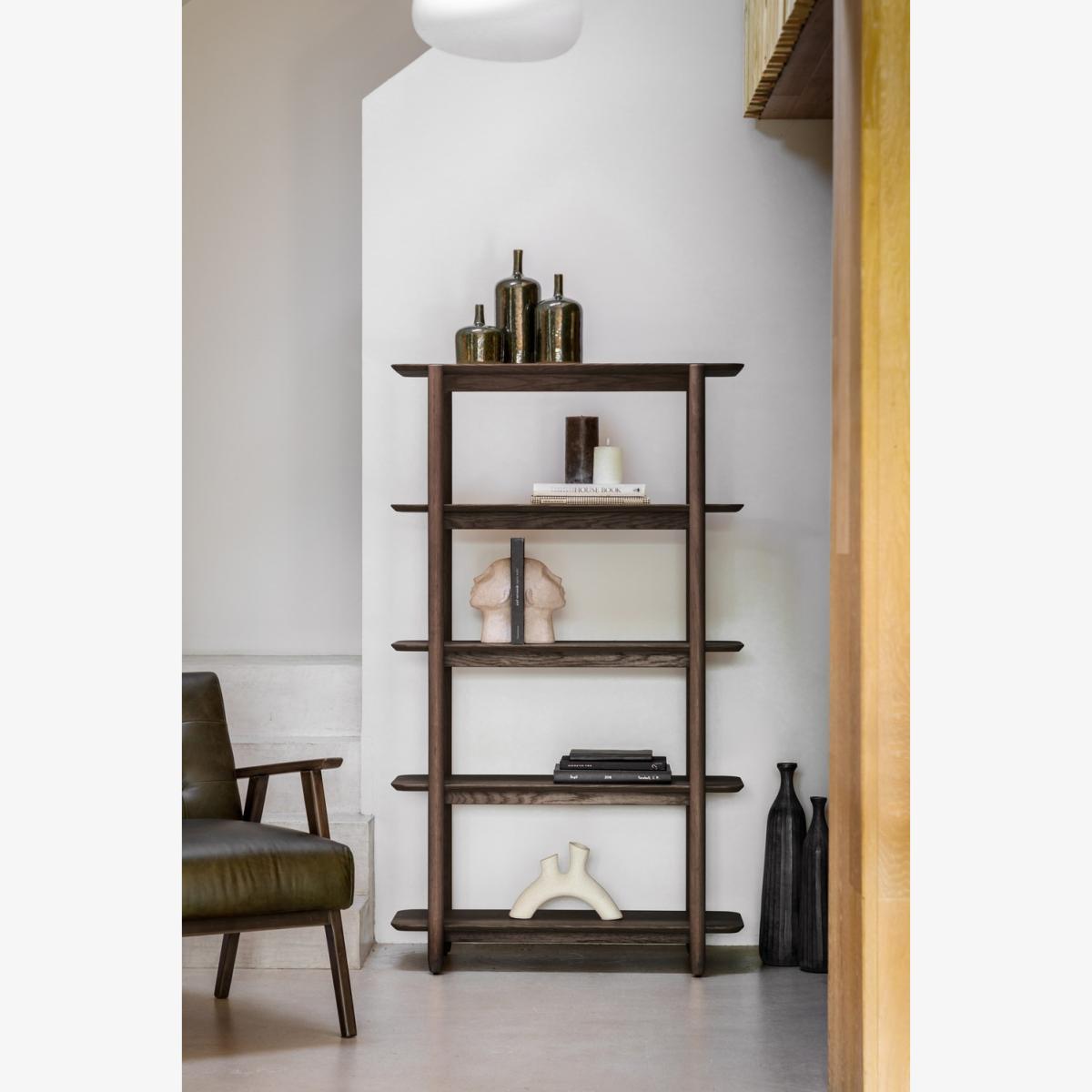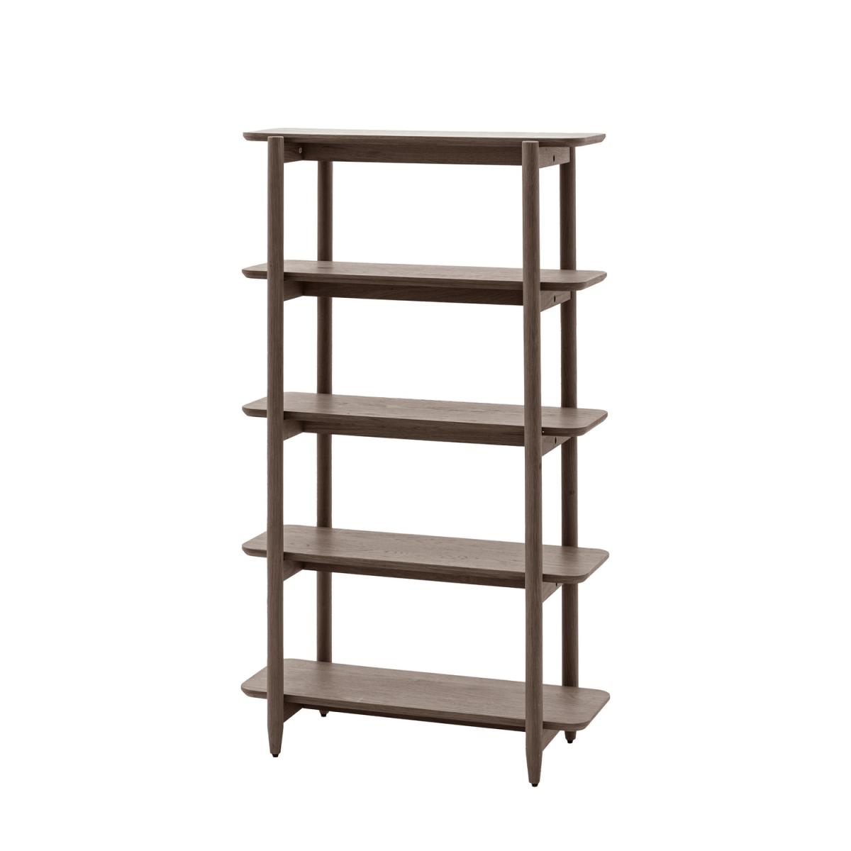 Featuring clean lines and a sleek, contemporary aesthetic, this open display shelf effortlessly complements modern, Scandinavian, and minimalist interiors. Designed with five wide shelves, it offers ample space to display books, plants, decorative items, or storage baskets, keeping your home organized and stylish. The natural oak wood is enhanced with a smoked finish, highlighting its beautiful grain and adding warmth and depth to any room. Crafted from high-quality oak, this piece ensures long-lasting durability and stability, making it a reliable addition to your home. The open-back design maintains an uncluttered, breathable look, creating a bright and spacious atmosphere. A blend of functionality and style, this open display unit brings a touch of Scandinavian charm to your home. Crafted from solid oak with a beautiful smoked finish, it offers five spacious shelves for organizing and displaying your favorite items. The open design keeps your space light and airy, making it a perfect fit for modern and minimalist interiors. Whether used for books, décor, or everyday essentials, this shelving unit is a stylish storage solution that enhances any room. Dimensions:W49.5 x D156.5 x H14.5 cm Weight: 24 kg Storage: 4 shelves Colour: Brown Finish: Oak Material: Oak Veneer / MDF / Oak / Rubber Wood Assembly required: Yes