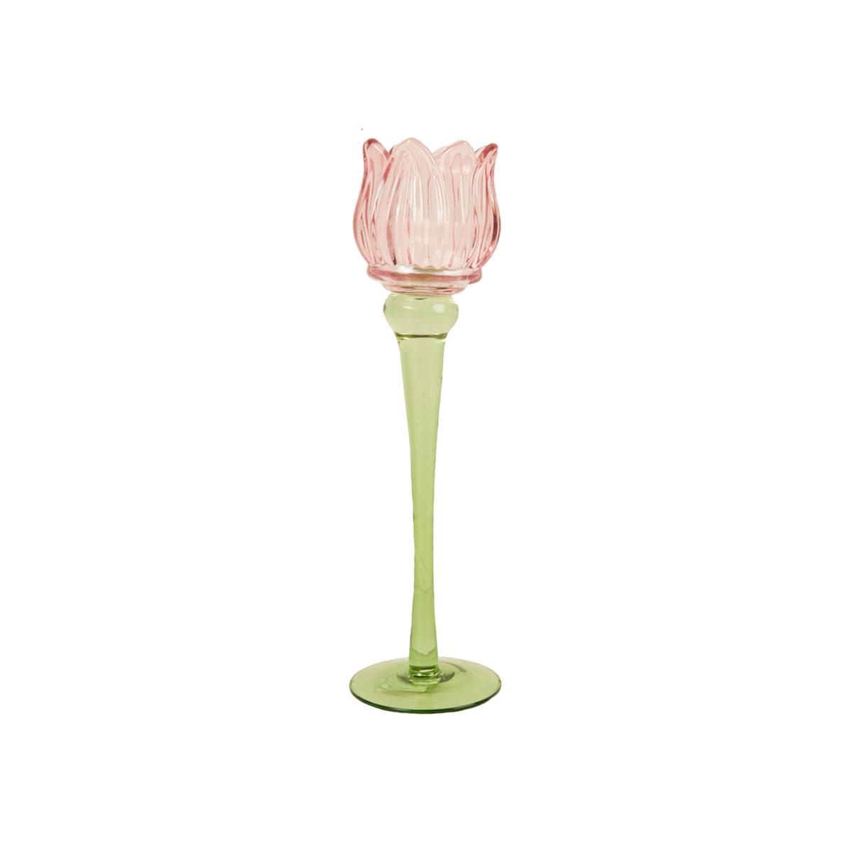 Tall Tulip Glass Tealight Holder - Multicolour