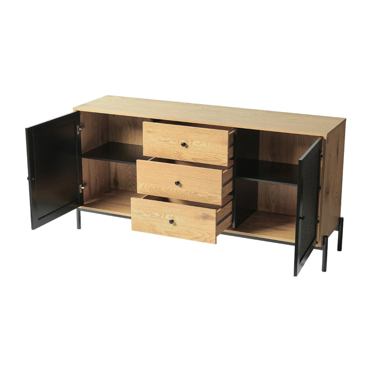 This tall wooden storage TV stand cabinet blends modern design with practicality, perfect for organising living rooms or entertainment spaces. Its light oak finish and natural rattan-woven doors create a stylish contrast, adding warmth to contemporary interiors. Three deep drawers glide smoothly on robust runners, ideal for storing media accessories or daily essentials while keeping surfaces clutter-free. Built to last with durable craftsmanship, it combines everyday functionality with timeless appeal.