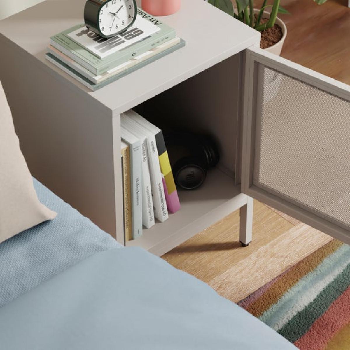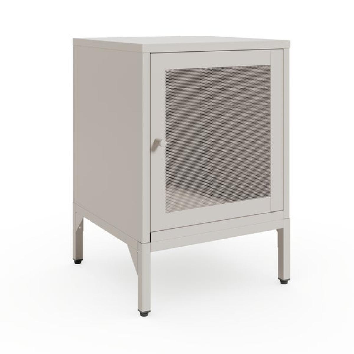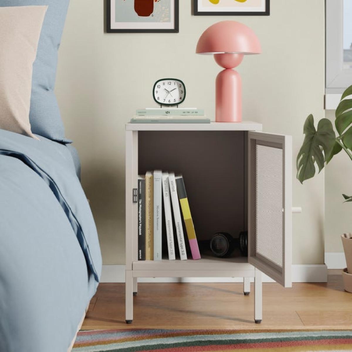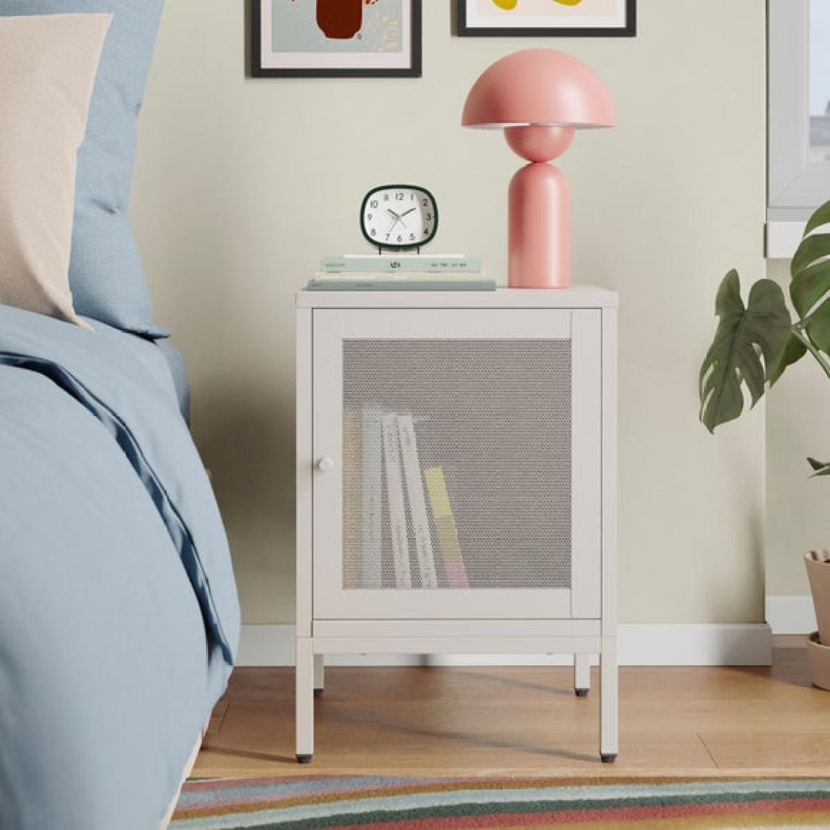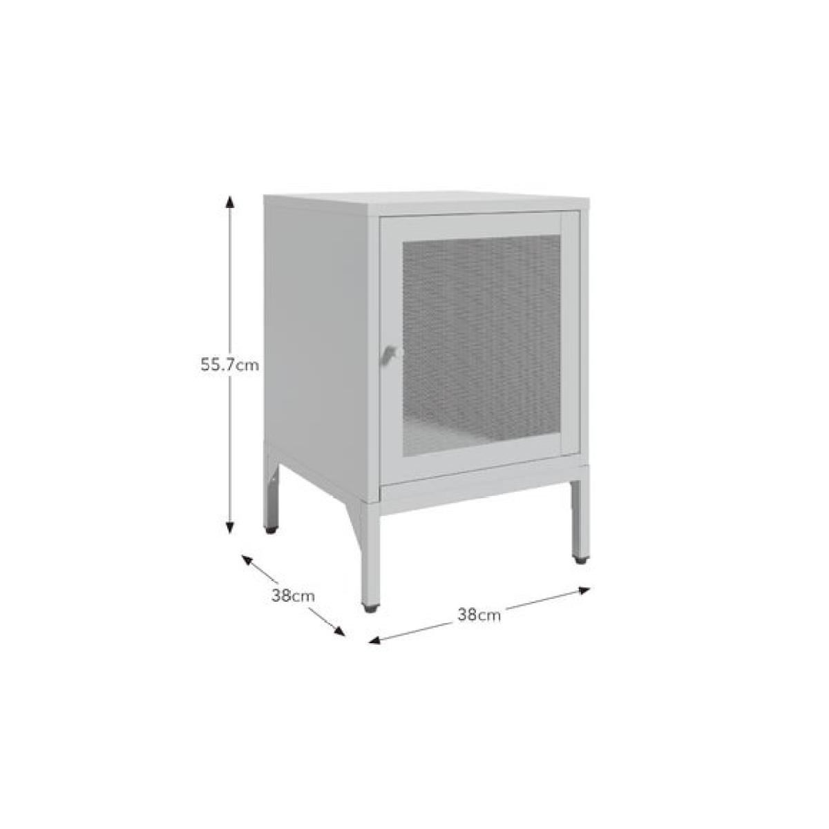 * Metal bedside table * Ample storage * Mesh detailing * Adjustable legs The Talla bedside table is a sleek and practical addition to any bedroom, offering a modern industrial look with everyday functionality. Crafted from durable metal, this piece is designed to be strong and long-lasting, while its adjustable legs ensure stability on uneven surfaces. Its compact form makes it ideal for smaller spaces, providing a sturdy surface for a lamp, books or nighttime essentials.