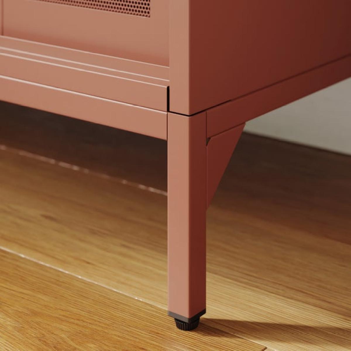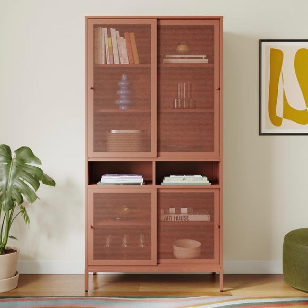I love the Talla Metal Tall Sideboard for its sleek, modern design with a subtle touch of vintage charm, making it versatile across various interior styles. It works particularly well in contemporary, Scandinavian, or even eclectic spaces where its clean lines and muted blush finish can serve as a statement piece or a subtle backdrop. Practical styling tips include using the top surface for decorative objects like lighting or vases, while the glass-fronted sections are perfect for showcasing favourite books, ceramics, or curated collectibles. The pull-out drawers and shelves also offer handy storage options for keeping clutter out of sight, making it as functional as it is stylish.