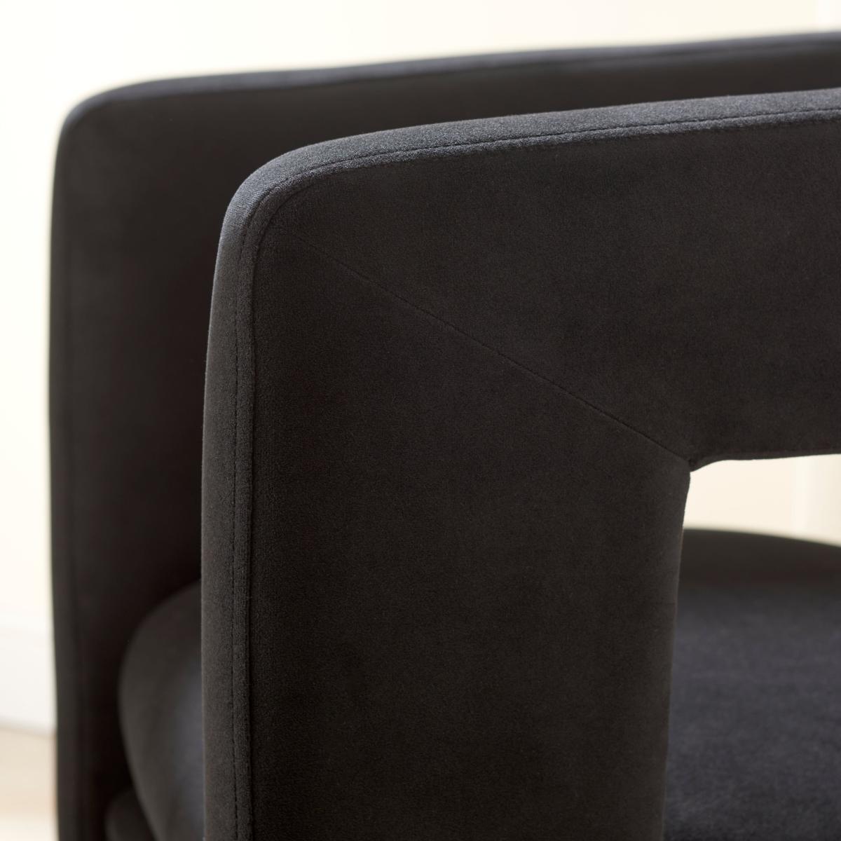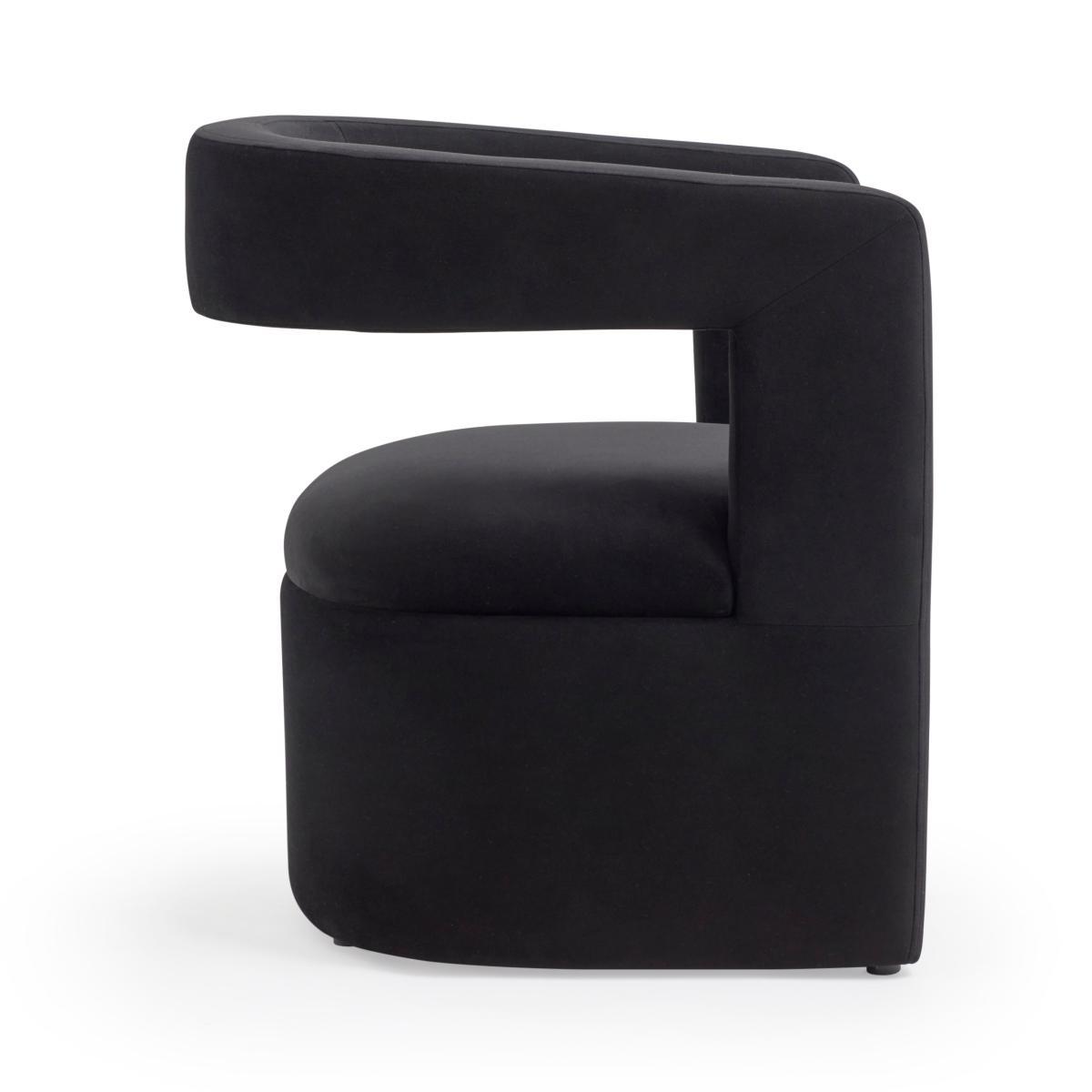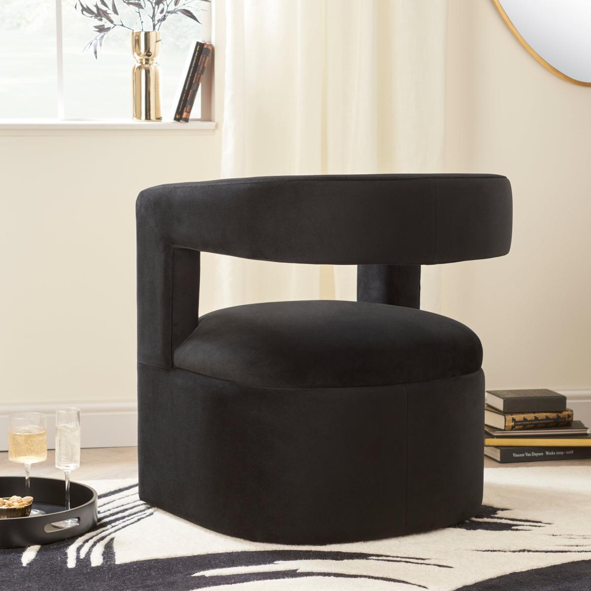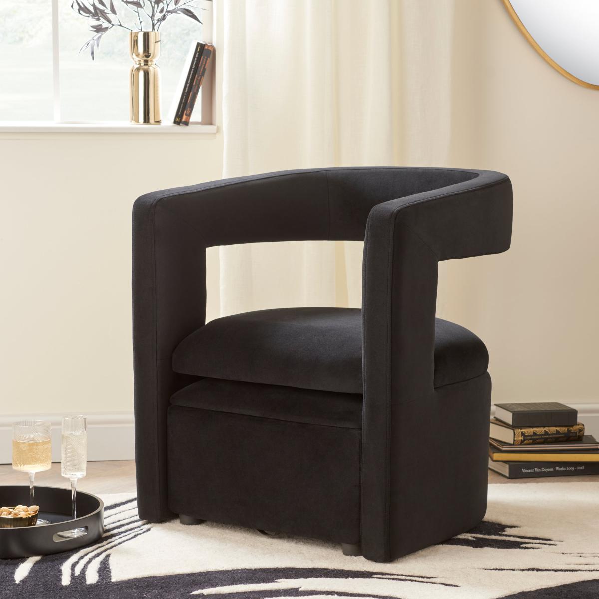 I love this velvet chair for its sleek, contemporary silhouette and rich black hue, which makes it such a versatile statement piece. It works particularly well in modern or minimalist interiors, adding a touch of sophistication without overwhelming the space. Practical styling tips include pairing it with neutral tones for a cohesive look, or adding colourful cushions for a pop of personality. Its voluptuous velvet finish makes it inviting and perfect for cosy reading corners or accent areas. To keep it looking its best, avoid placing it in direct sunlight to prevent fading and consider a gentle vacuum or brush to maintain its plush surface.