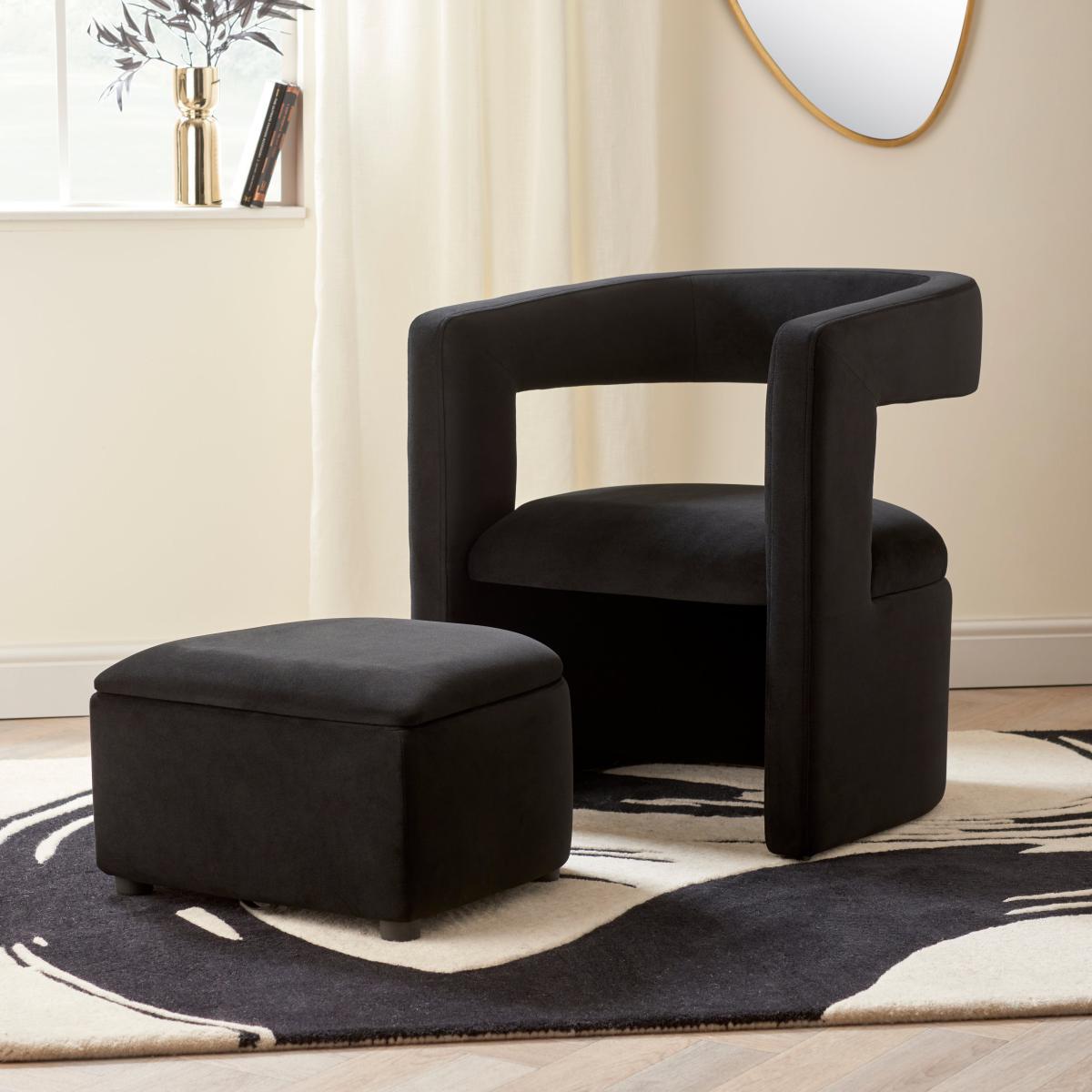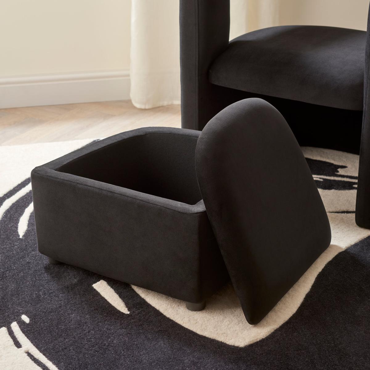 Bring a touch of sophistication and luxury into your space with the Tallie Velvet Chair. The stylish soft velvet upholstery paired with the contemporary design of the chair effortlessly elevates the space and is sure to capture the attention of any guests. The Tallie Chair also comes with a matching footstool, that can be conveniently stored away under the chair.