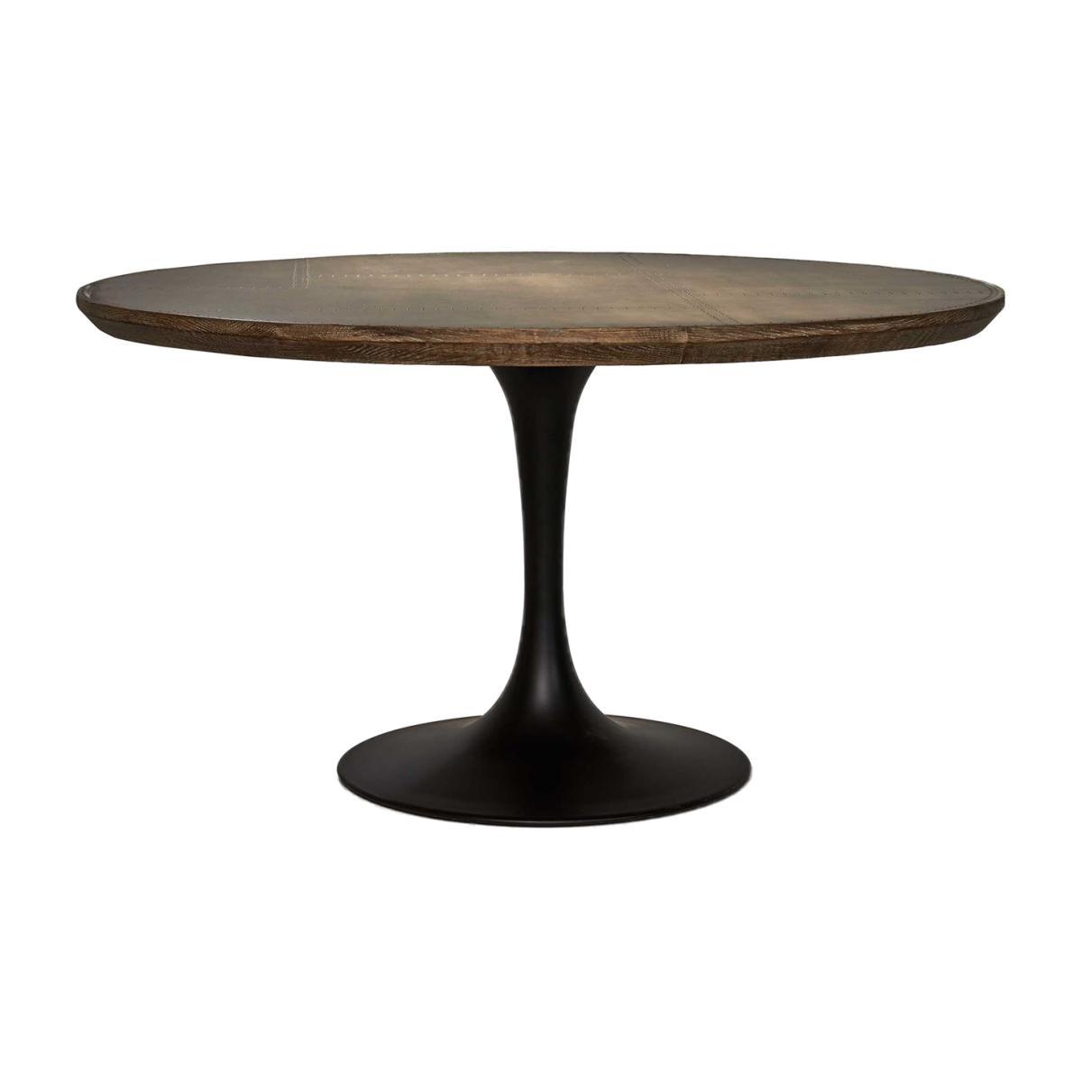 Design. Sophistication meets urban style in this elegant blend of light burnt oak, warm brass and sleek black metal. Rivet details and distressed texture lend an industrial air, whilst a chic hour glass base plays an elegant supporting role.