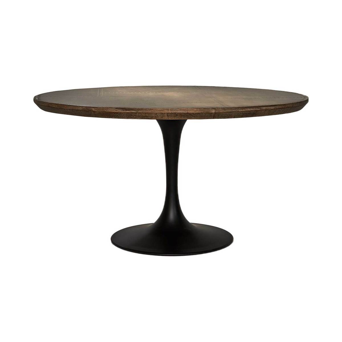 Sophistication meets urban style in this elegant blend of light burnt oak, warm brass and sleek black metal. Rivet details and distressed texture lend an industrial air, whilst a chic hour glass base plays an elegant supporting role.