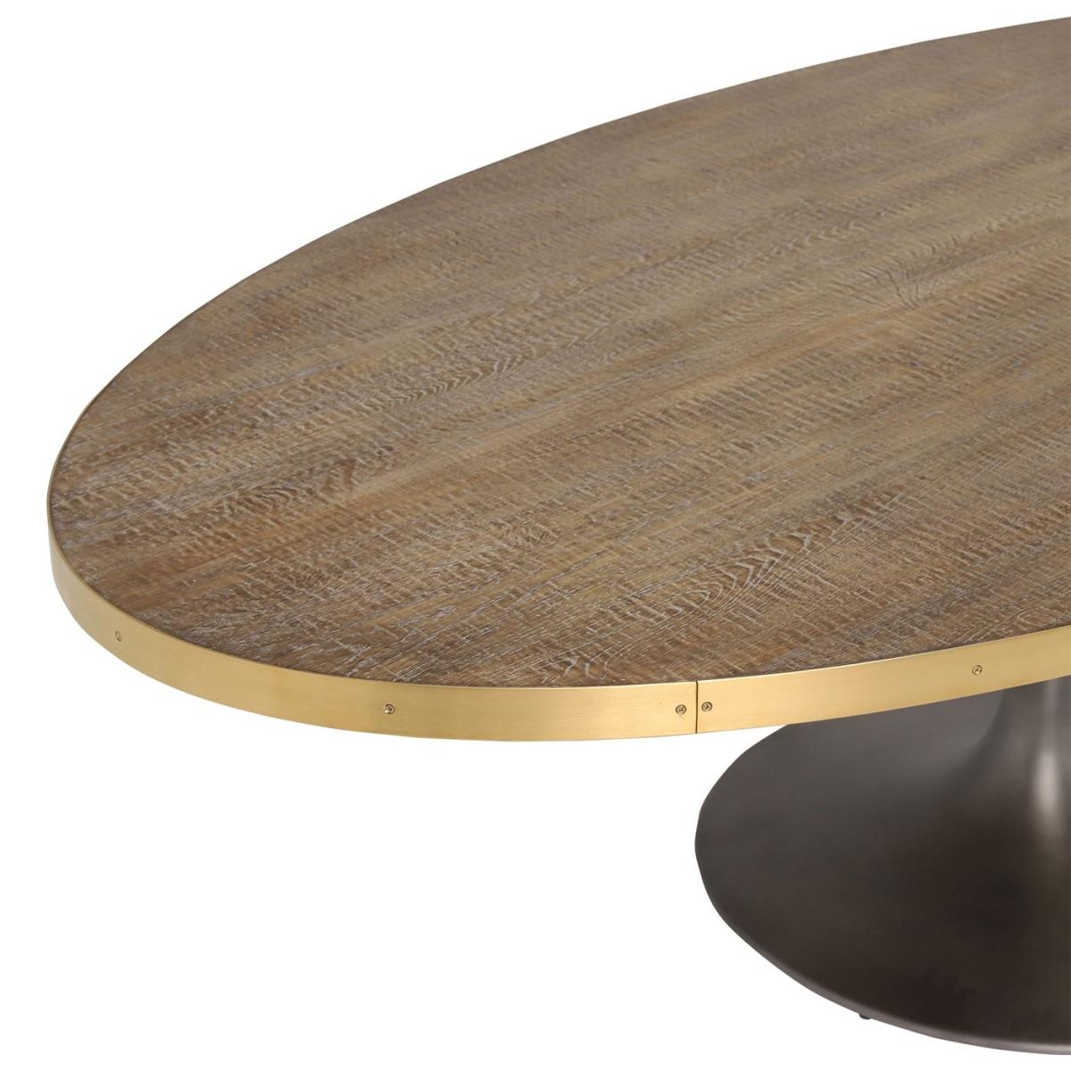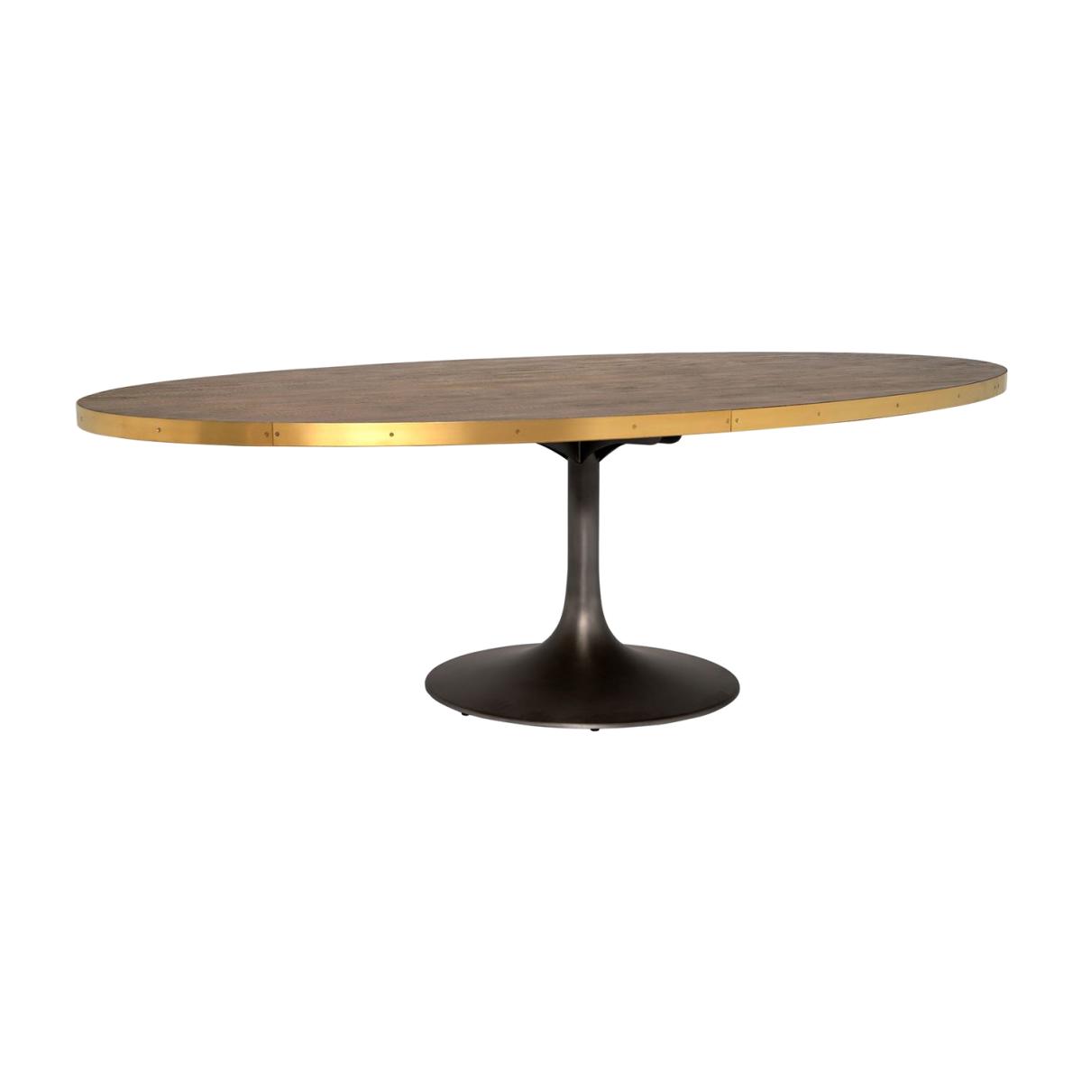 Design. Dark textured oak wrapped in a shimmering brass halo sits elegantly on a silhouetted hour glass base, shaped in cool back metal. With space for up to eight people, Talula is sure to be the life and soul of any party.