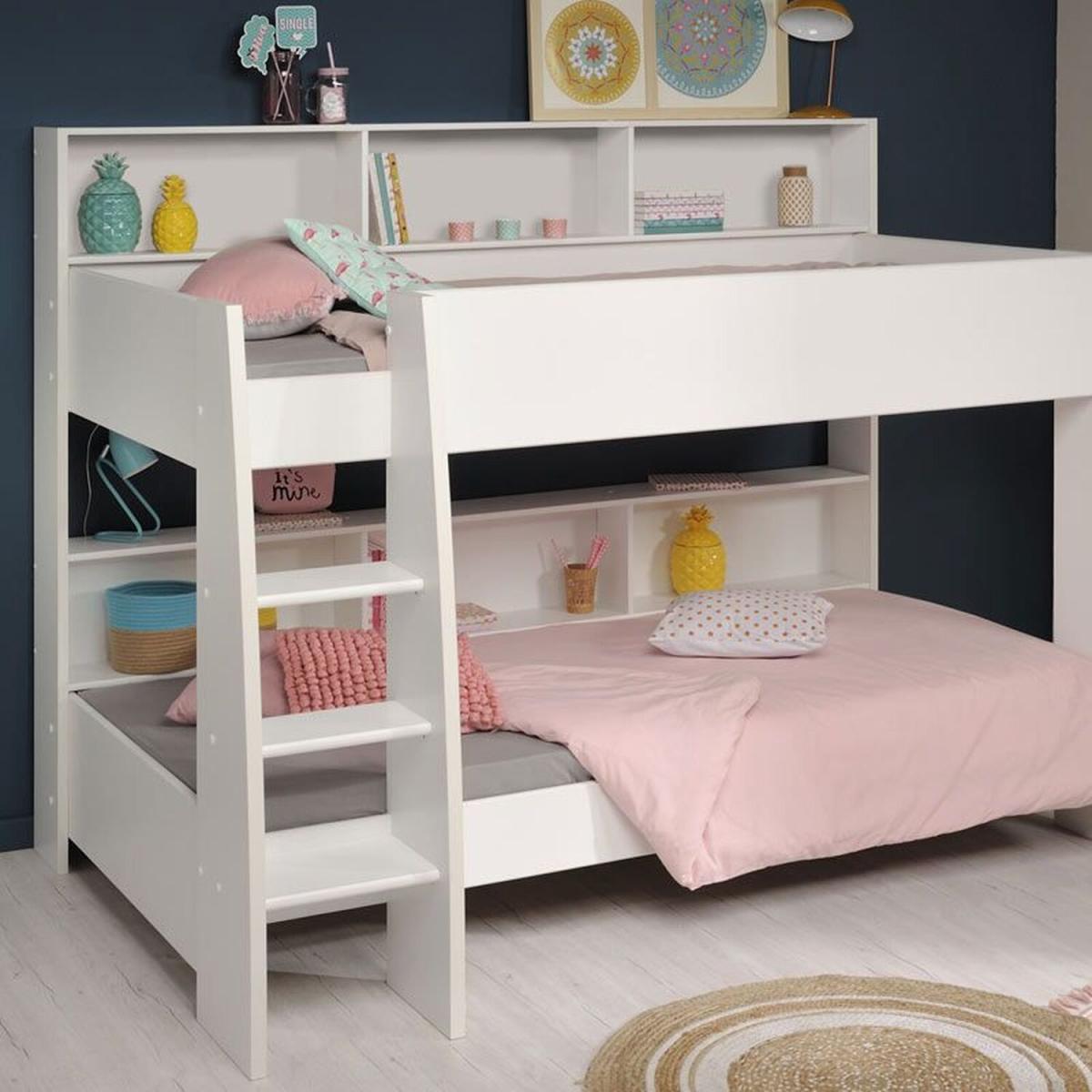 The Parisot Tam Tam White & Brooklyn Oak Bunk Bed is a fantastic addition to the Tam Tam Bunk Bed range, from the manufacturer, Parisot. This Tam Tam White & Oak Bunk Bed is a stylish modern bunk bed with built-in storage, that has two standard european single beds and is ideal for use in any child's bedroom. This children's bunk bed frame is the perfect addition to your child's bedroom especially if you have a smaller bedroom where space is limited, and when two children share a bedroom or your kids enjoy having their friends over to sleep. This Parisot Tam Tam White & Oak Bunk Bed is finished in a solid plain white effect which is complimented with reversible panels in white or Brooklyn oak coloured backing to each shelving area.