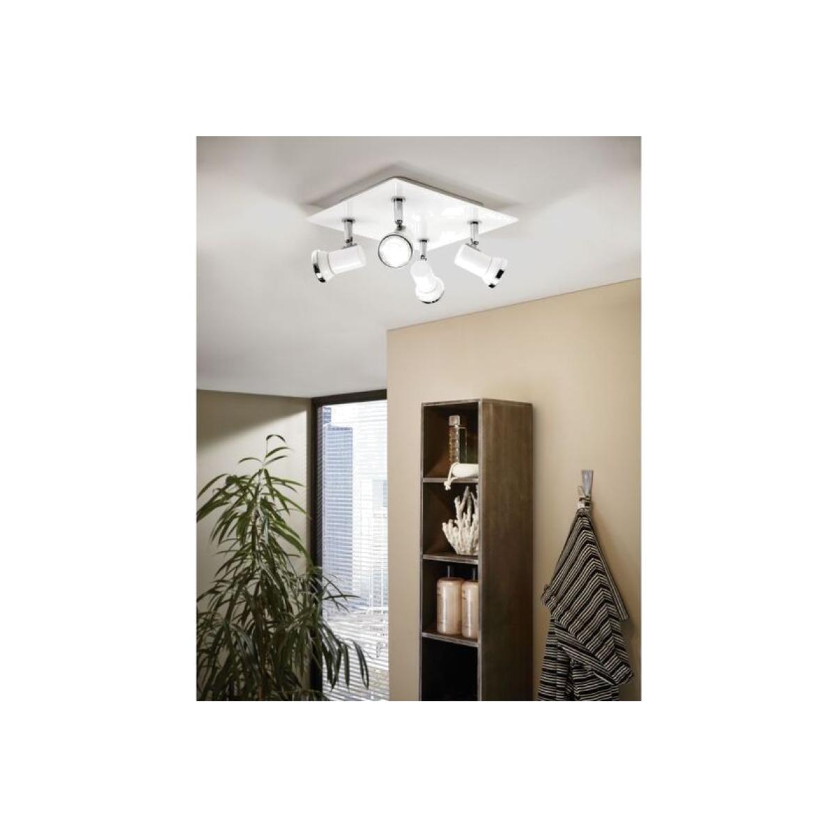 The Tamara 1 has a rectangular base with four adjustable spotlight heads in a white steel finish. The fitting is an interior bathroom light with polished chrome detailing and includes 4 x GU10-LED illuminants. The Tamara 1 has an IP44 rating and classic white finish, perfect for illuminating your modern bathroom.