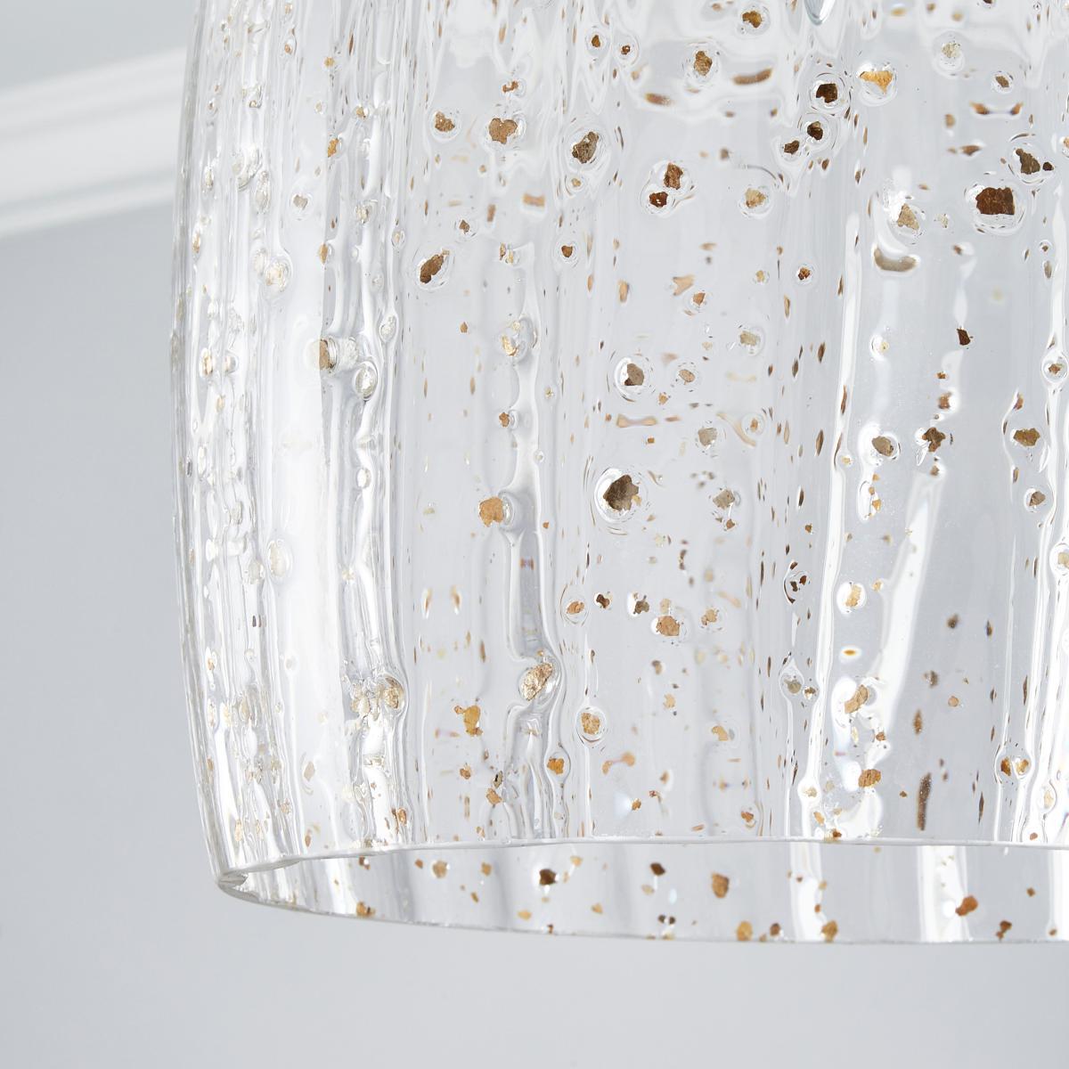 Bring a touch of elegance into your room with the Tamara Easy Fit Pendant. Crafted from clear glass, small gold foil detailing has been added within the glass shade. The pendant is easy to fit making it perfect for renters. A maximum bulb wattage is 13 watts with the pendant being suitable for ceiling lights only.