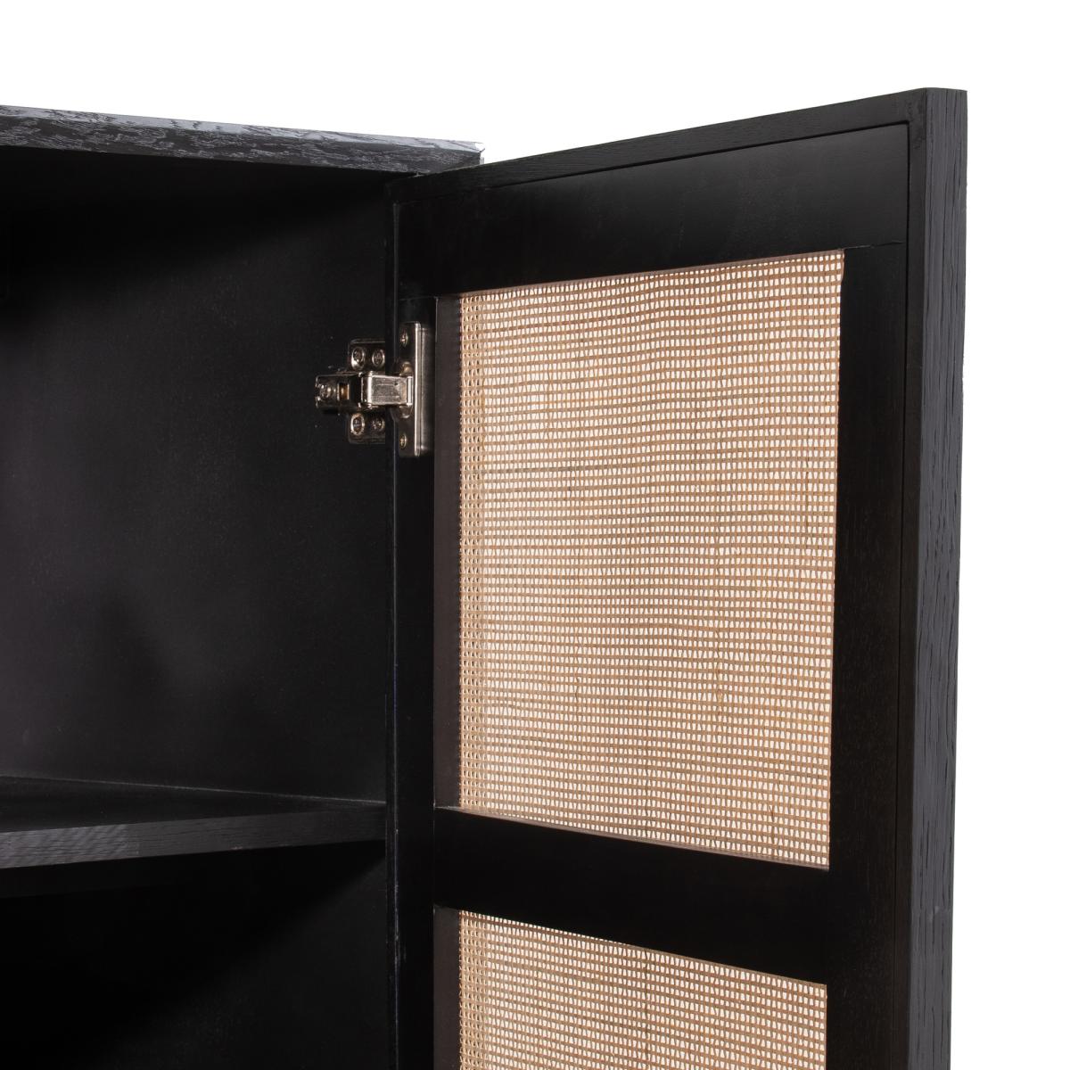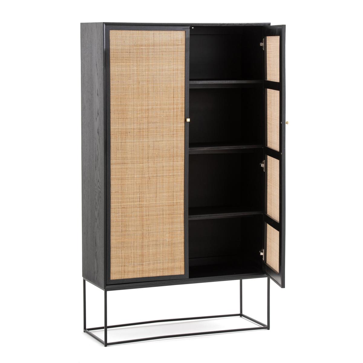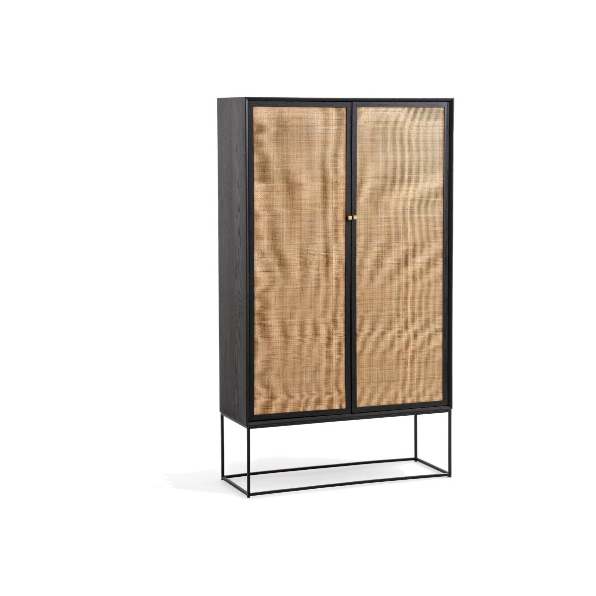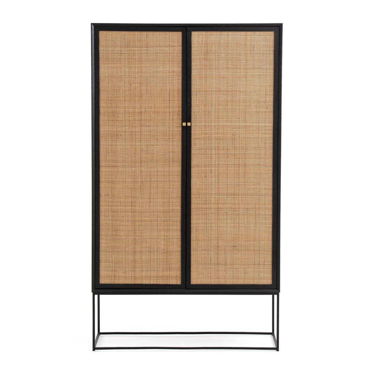 The Tamaroa wardrobe will seduce you with the harmonious combination of its oak-veneered structure framing two rattan doors lightly supported by a metal base..