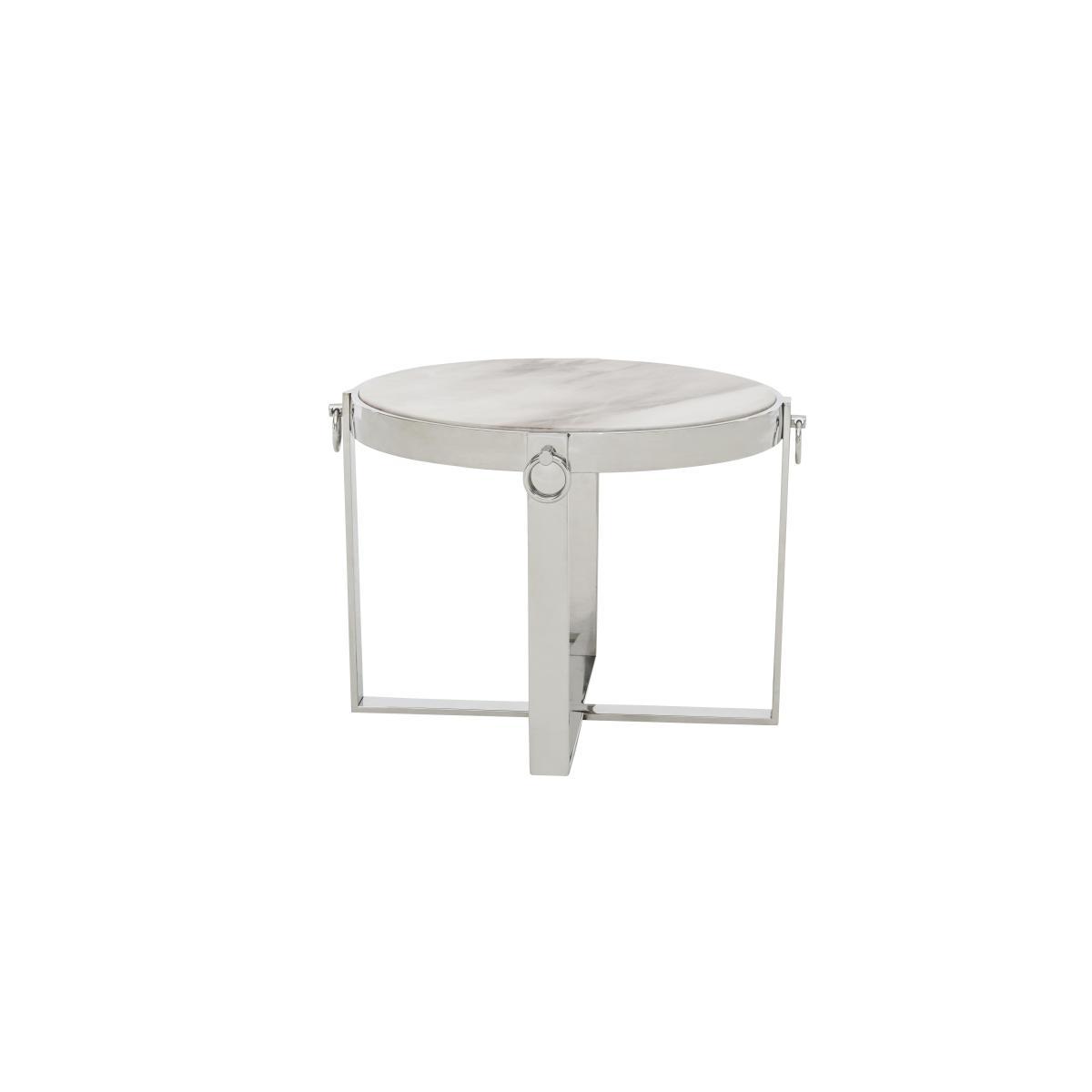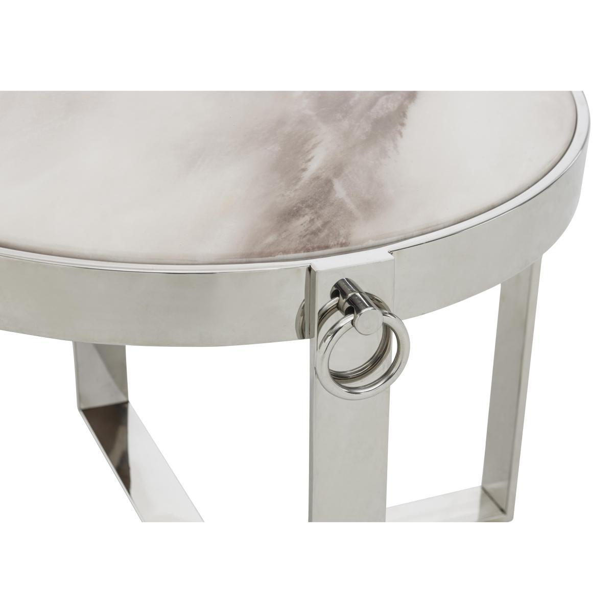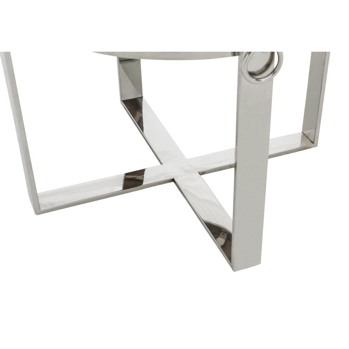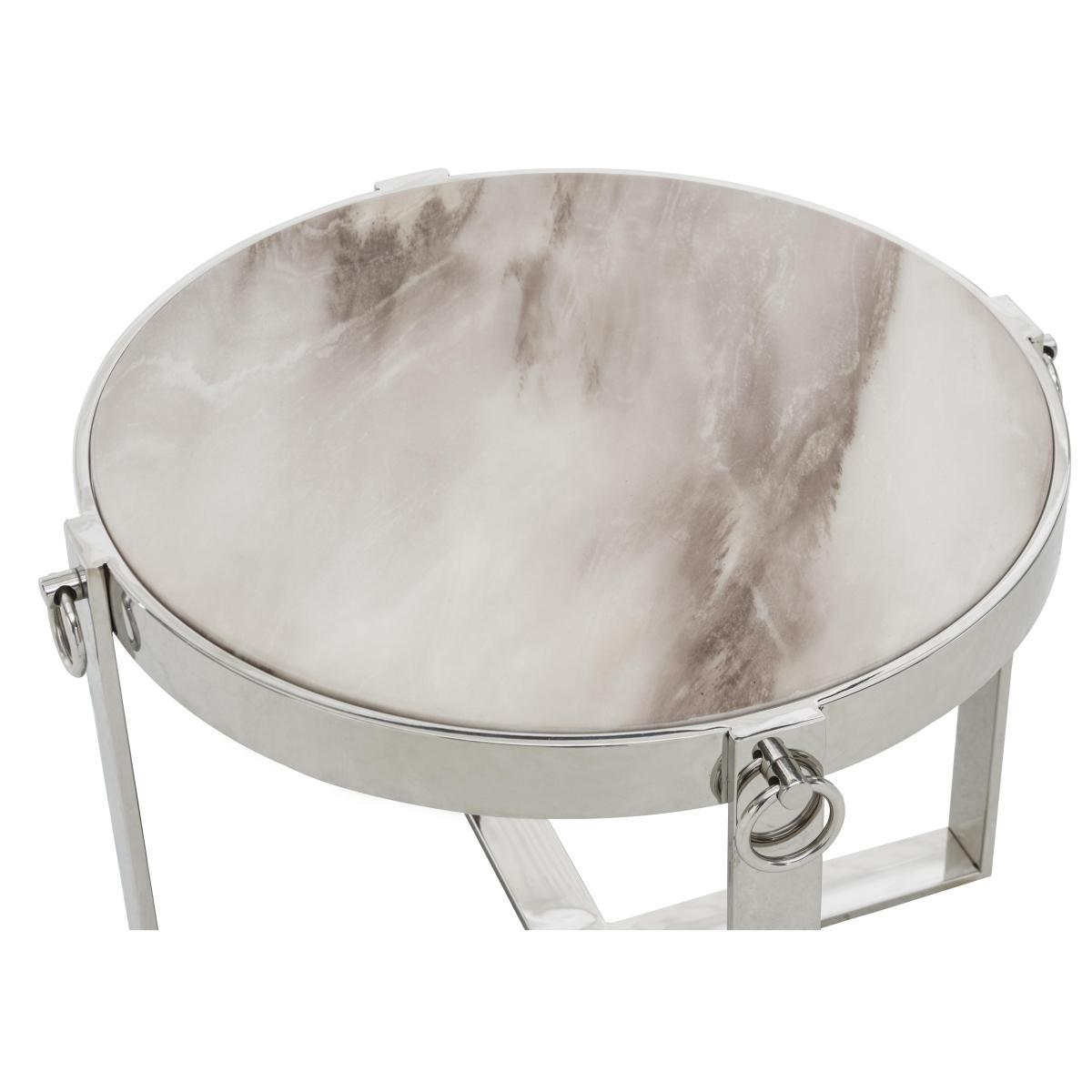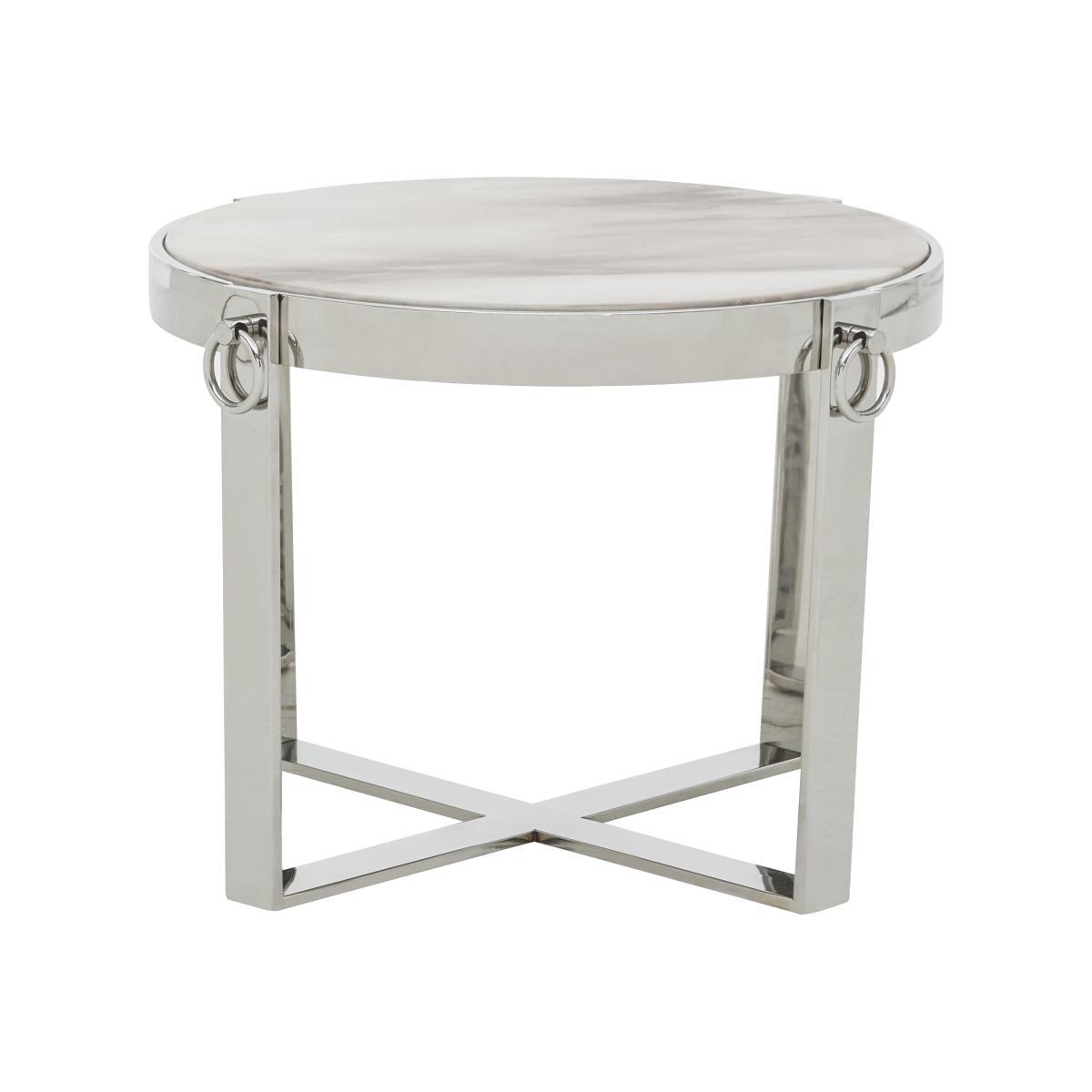 Compact contemporary style with a luxe industrial feel. Marble top finished with beautiful and distinctive patterning. Polished stainless steel base. Stylish, contemporary and rather glamorous, the compact Tamburo lamp table is that perfect piece of occasional furniture – one that’s both functional and beautiful. And, thanks its luxe finish, bold lines and modern feel, it looks fabulous in all kinds of settings. The circular top is made of marble finished with an innovative process that produces a perfectly smooth and even brown-gold marble patterning. The crossed-leg base is crafted from polished stainless steel. The overall high-shine appearance ensures that this table works in bright modern spaces, as well as in rooms that lean more toward on trend industrial style. Place it next to a leather sofa or leather armchair for a look that’s the very definition of modern elegance. The great-value Tamburo lamp table is part of the Tamburo collection of beautiful occasional pieces and, thanks to its unique finishing process, perfectly matches the Tamburo coffee table. Did you know?. The marble used in this piece is natural and therefore unique. Colour, tone and pattern will vary from piece to piece. Top tip. To clean, wipe any spills with a damp cloth and then dry using a soft duster. Avoid using abrasive cleaners as these may scratch the surface. Use coasters or placemats at all times.