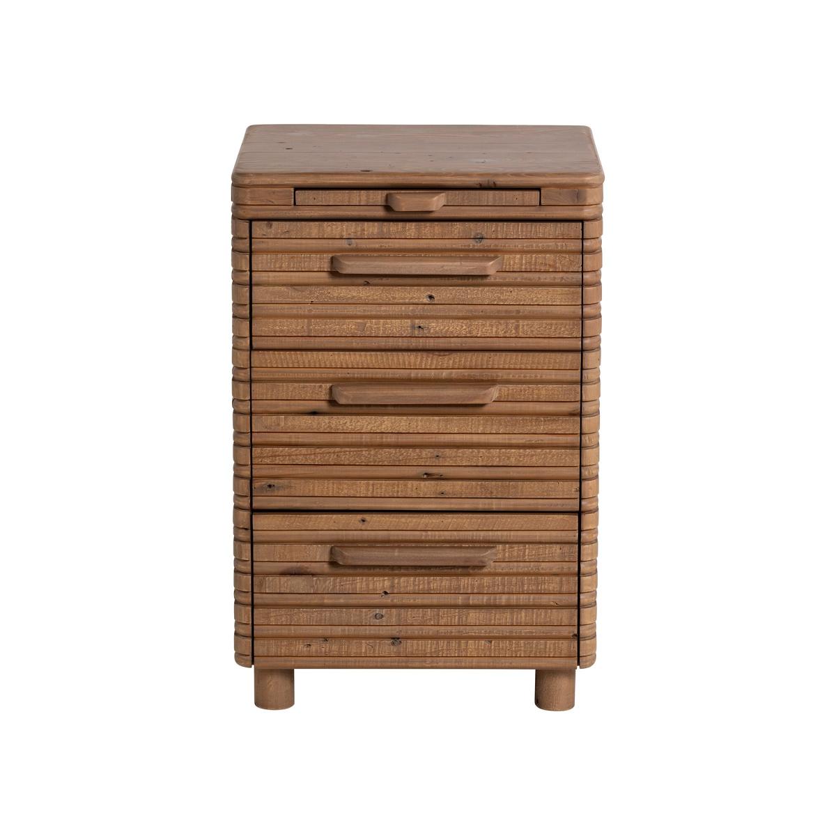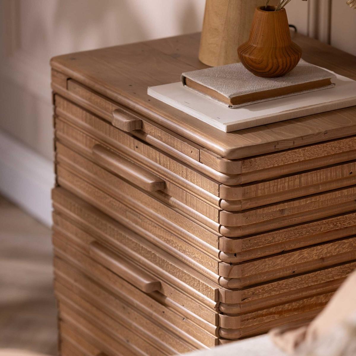 I’m a fan of the Tamia bedside for its warm, ribbed-wood texture and neat proportions - it adds instant tactility without overwhelming a small room. Its natural oak finish suits Scandi, coastal or modern-Japanese schemes, and the subtle groove detailing brings just enough depth to an otherwise simple silhouette. To style it, keep the top clear of clutter: a low-profile lamp, a small potted plant and perhaps a slim book or two. Tuck bedside essentials out of sight in the drawers, then layer in soft linens and a woven rug to complement the timber tones.