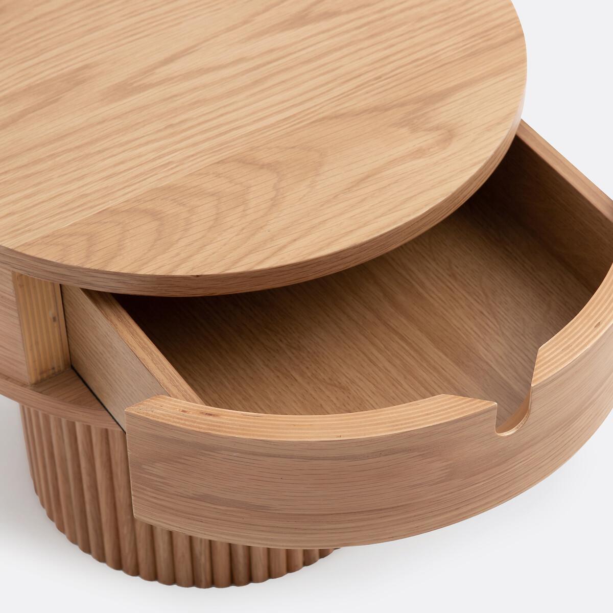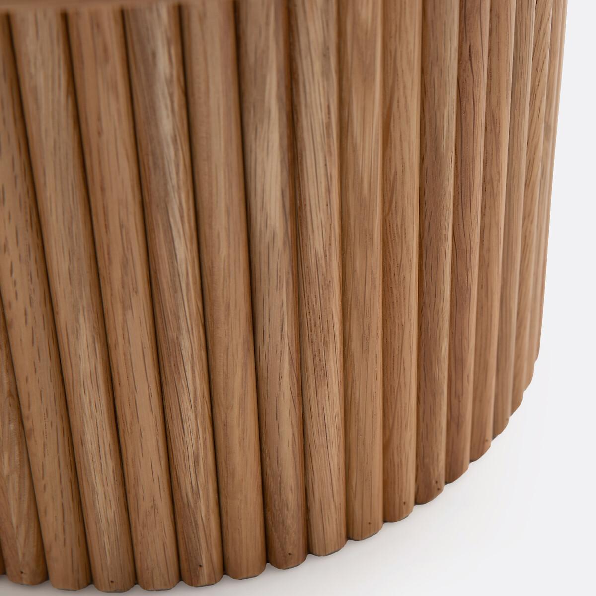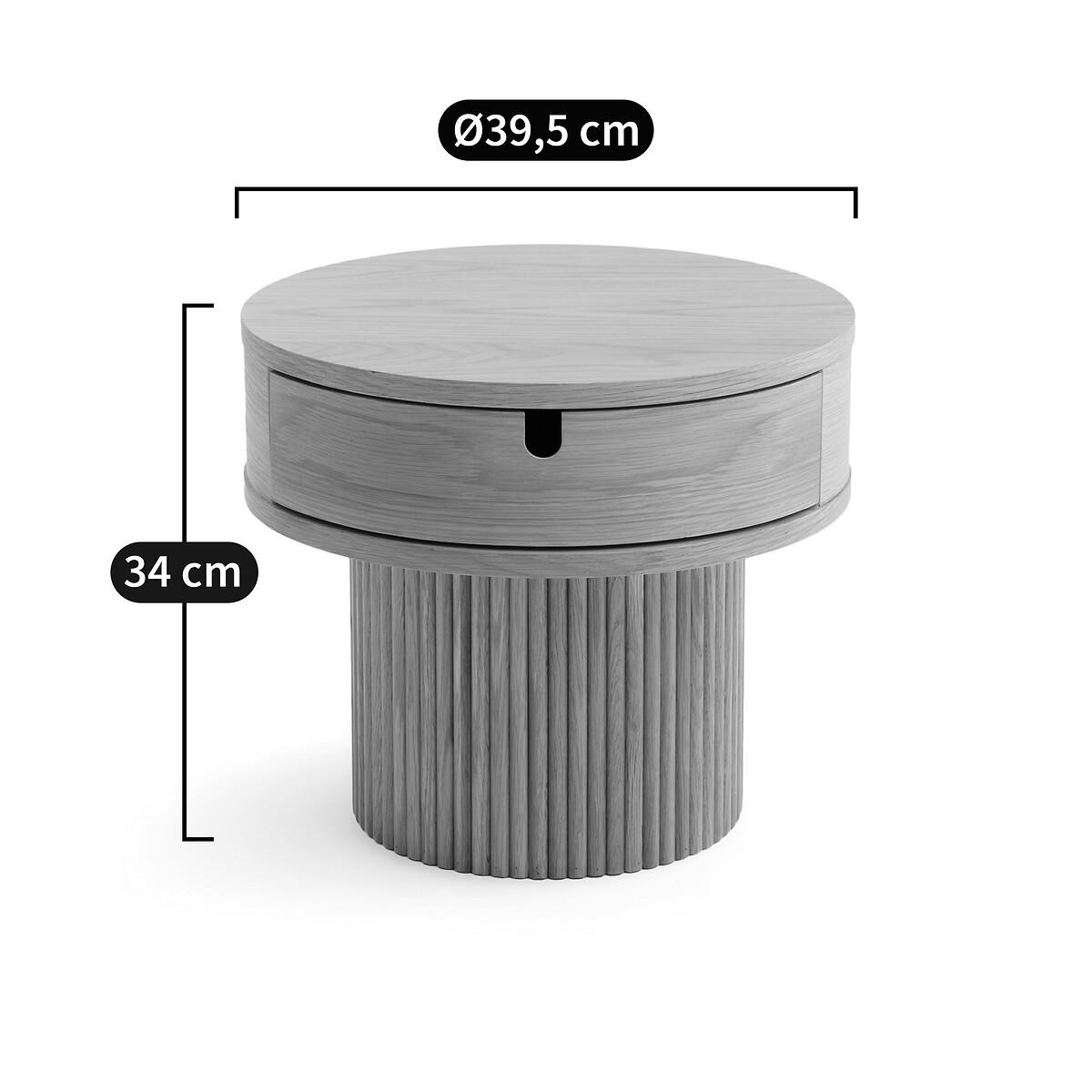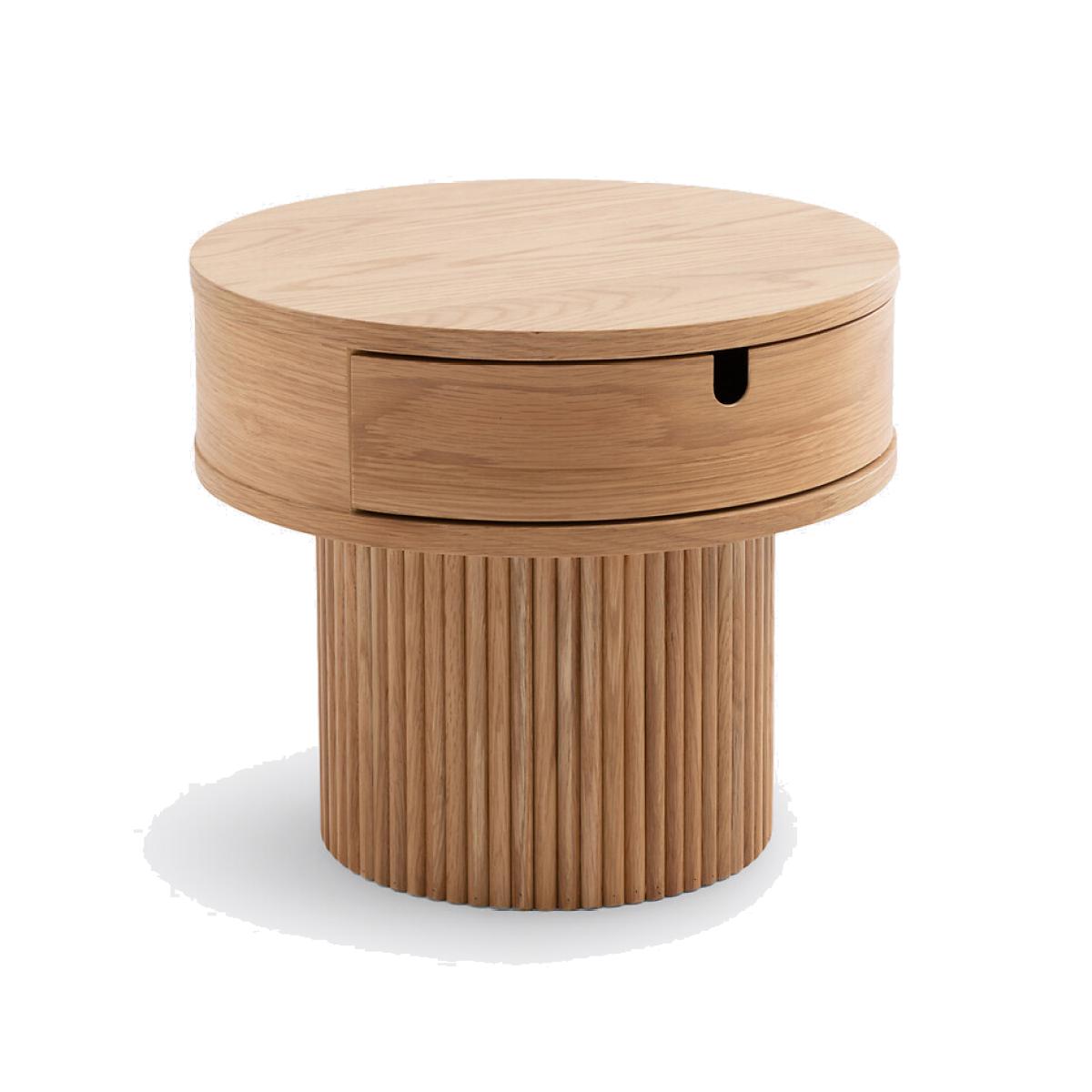 The Tamita bedside table is part of the La Redoute Intérieurs Signatures collection. A selection of exclusive creations, designed by our in-house design studio. Inspiring, easy to live with, trendy... these products have become our customers' favourites. and no doubt yours!. An internal design by Adrien Edel :"Small but sure to make a big impression!Tamita is a bedside table that stands out from the crowd with its round shape. It combines compact dimensions, storage space and a contemporary look with its fluted solid oak base. "Product Details • 1 drawer • Unit in oak-veneered MDF • Leg covered with half-round solid oak slats • Nitrocellulose varnish finish • FSC® certified woodDimensions. Overall • Shelf diameter: 39.5cm • Base diameter: 26cm • Height: 34cm • Weight: 8kg. Usable dimensions • Drawer: L26 x H6.4 x D25.5cmDelivery:. Sold pre-assembled. Available for home delivery. Note! Please check that all access points are large enough to accommodate your delivery (doors, stairs, lifts). • WOOD FROM SUSTAINABLY MANAGED FORESTS. FSC® certified wood comes from forests that are environmentally, socially and economically well managed. Dimensions and weight of parcel • 1 parcel • L48.5 x H42.5 x D48.5cm. 12kg.
