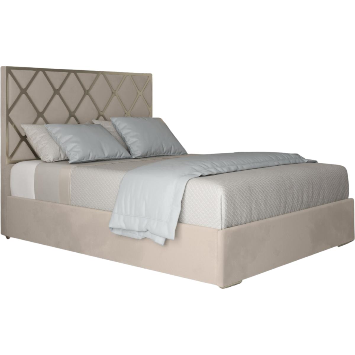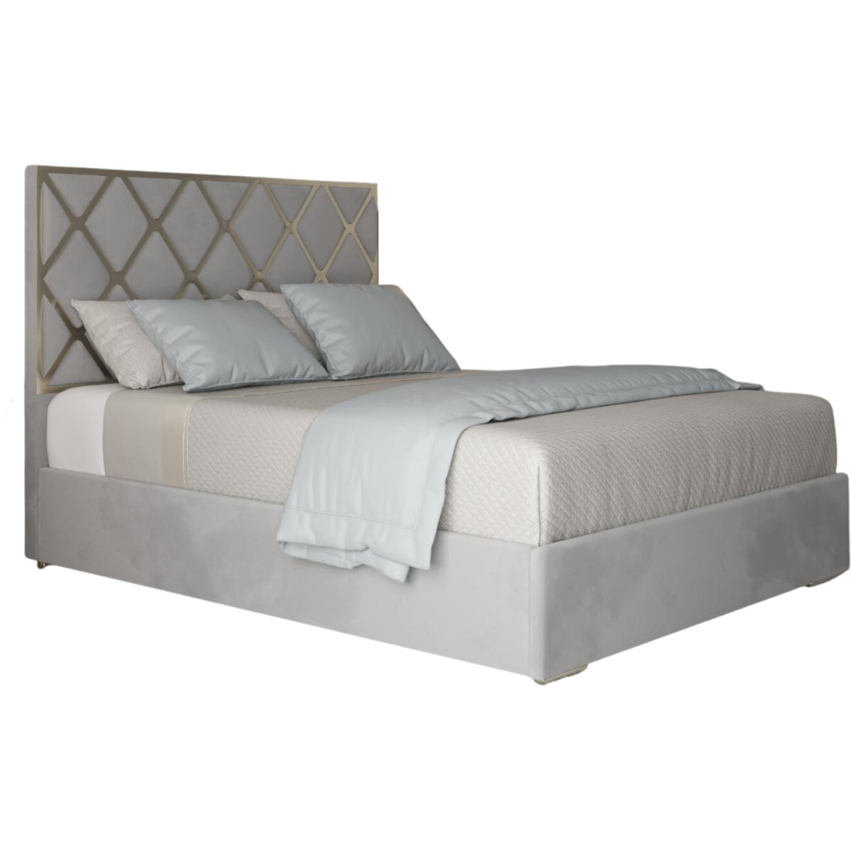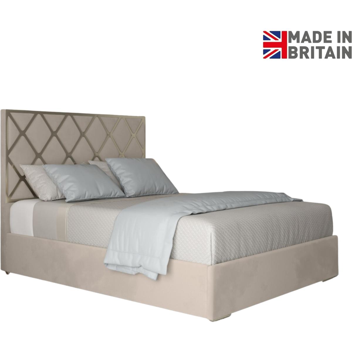 Striking diamond shaped design with a choice of metal finishes. Brushed gold or brushed silver as standard and can also upgrade to mirror gold or mirror silver. The headboard is panelled and boast a generously padded surface. The footboard is detailed with pipe feet to match brushed silver or gold legs to match brushed gold. The bed is supplied is solid platform boards for extra support.