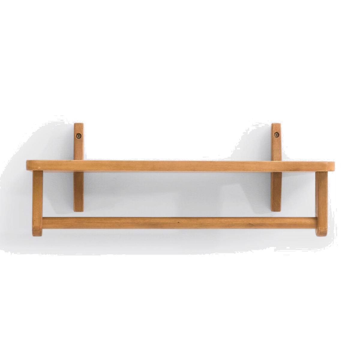 The acacia shelf unit with teak finish. With its small depth (21 cm), it can be placed anywhere, in your kitchen, your bathroom or your entrance!Product Details • Oiled acacia wood, from controlled sources, teak finish • 1 shelf on top, 1 towel or tea towel bar below. Dimensions • Length: 56cm • Depth: 21cm • Height: 2.3cm. Hanging rail: • Length: 53cm • Width: 2.3cm • Height: 2.3cmDelivery:. Assembly required. Available for home delivery. Note! Please check that all access points are large enough to accommodate your delivery (doors, stairs, lifts). • WOOD FROM SUSTAINABLY MANAGED FORESTS. FSC® certified wood comes from forests that are environmentally, socially and economically well managed. Parcel Dimensions:1 parcel • 58 x 25 x 8cm. • 2kg