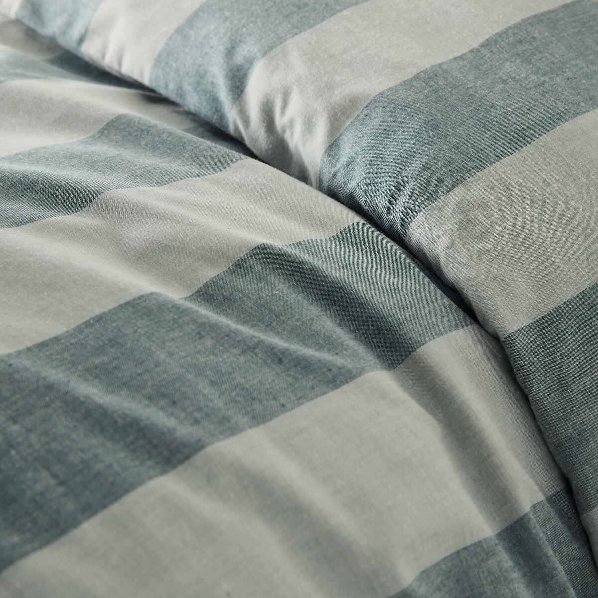 The elegance of a timeless stripe in a contemporary-style woven dyed fabric : Tamori bed linen adopts stripes in trendy colours for a more modern look. Designed by La Redoute Intérieurs. Cotton is part of our daily lives. We love it for its suppleness and softness. Easy Care, it is ideal for the beds of young and old alike!Product Details • 100% cotton • 144 thread count • Dyed woven stripes on either side • Envelope-style opening Match this item with the rest of the bedding in the range for a stylish bedroom. And you can mix and match it with different colours and styles from our other bedding ranges when you want to change things up and create your own unique look. Care Advice • Machine washable at 60°C • By washing your laundry at 40°C instead of 60°C, you limit energy consumption. Dimensions • 140 x 200cm: Single. • 200 x 200cm: Double. • 240 x 220cm: Double. • 260 x 240cm: Double. Pillowcases sold separately. • OEKO-TEX® Standard 100. Standard 100 certification by OEKO-TEX® tests textile products for harmful substances via an independent, international label.