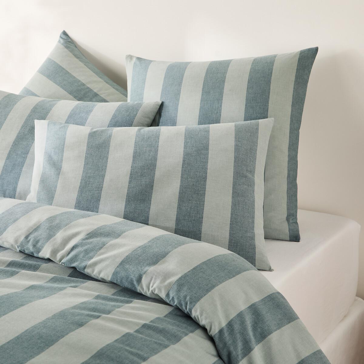 The elegance of a timeless stripe in a contemporary-style woven dyed fabric : Tamori bed linen adopts stripes in trendy colours for a more modern look. Designed by La Redoute Intérieurs. Cotton is part of our daily lives. We love it for its suppleness and softness. Easy Care, it is ideal for the beds of young and old alike!Product Details • 100% cotton • 144 thread count • Dyed woven stripes on either side Match this item with the rest of the bedding in the range for a stylish bedroom. And you can mix and match it with different colours and styles from our other bedding ranges when you want to change things up and create your own unique look. Care Advice • Machine washable at 60°C • By washing your laundry at 40°C instead of 60°C, you limit energy consumption. Dimensions • 50 x 70cm: Rectangular • 63 x 63cm: Square • OEKO-TEX® Standard 100. Standard 100 certification by OEKO-TEX® tests textile products for harmful substances via an independent, international label.