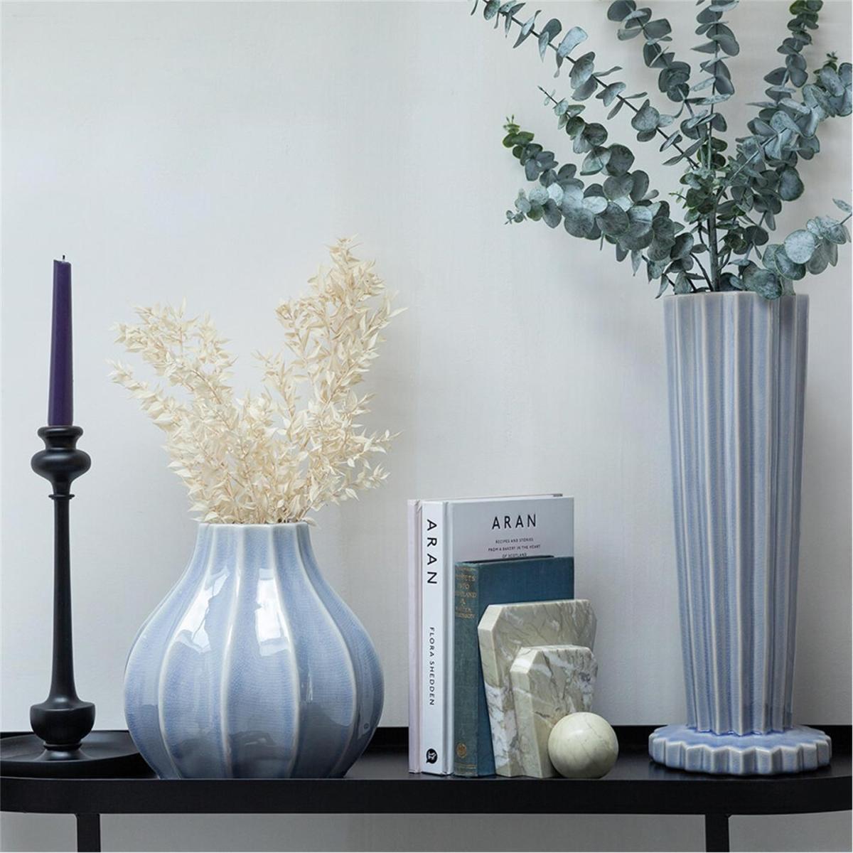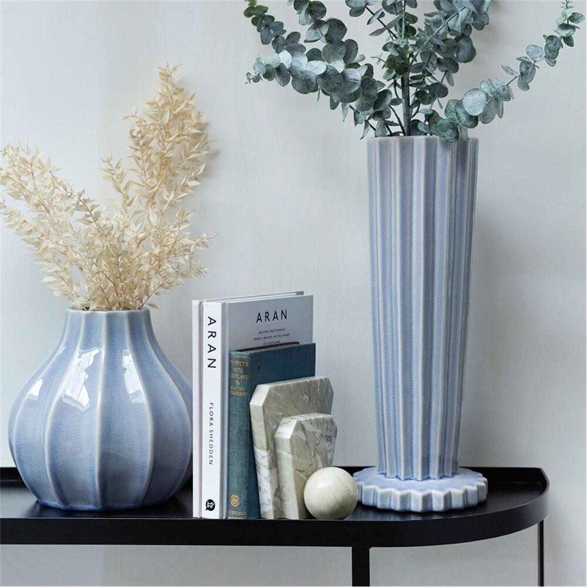 I love the Tall Eathenware Vase for its sleek, modern silhouette and subtle texture, making it a versatile piece for various interiors. It works particularly well in contemporary and minimalist spaces, where its understated design can add a touch of visual interest without overwhelming the surroundings. For styling, I recommend pairing it with tall, architectural stems like dried grasses or long-bladed foliage to emphasise its height and shape. It’s also great placed on a sideboard or console in a neutral palette; its subtle pattern can add depth while maintaining an elegant look. Keep the arrangement simple to let the vase stand as a statement piece or cluster it with similar vases for a more curated display.