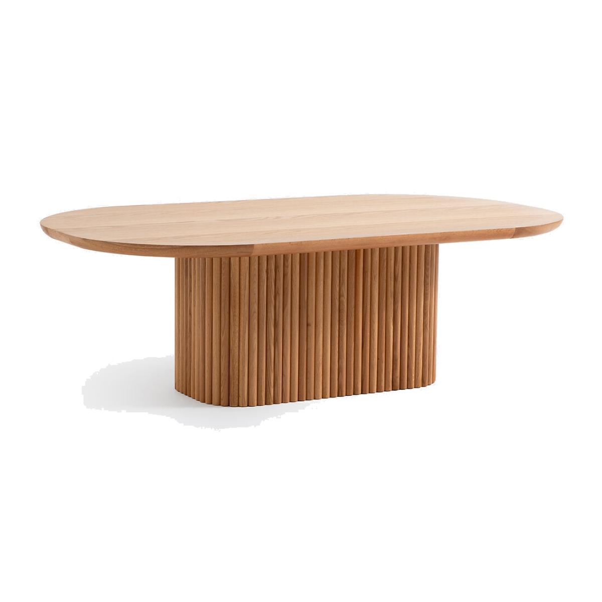 Light wood, soft lines, worked finishes: this is Tamula. Its oak veneered legs give it real character while its rounded top softens the overall effect. Created by La Redoute Interiors. Product Details • Oblong top in oak veneered MDF, polyurethane paint finish • Solid oak edging • Table top thickness 3cm • Base in semi-curved MDF veneered with solid oak slats, nitrocellulose varnish finish • Felt pads on feet • People required for assembly: 2. Care Advice • To protect your coffee table, consider trivets, coasters and placemats. Dimensions • Width: 120cm • Height: 38cm • Depth: 70cm • Weight: 40kg • Legs:W60 x H34 x D30cm • This product requires assembly. • WOOD FROM MORE SUSTAINABLY MANAGED FORESTS AND CONTROLLED SOURCES. FSC® Mix wood contains at least 70% FSC® certified and/or recycled wood, the remainder being FSC® controlled wood. Dimensions and weight of parcel2 parcels • W131 x H10 x D82cm, 20kg • W71 x H42 x D41cm, 24kg