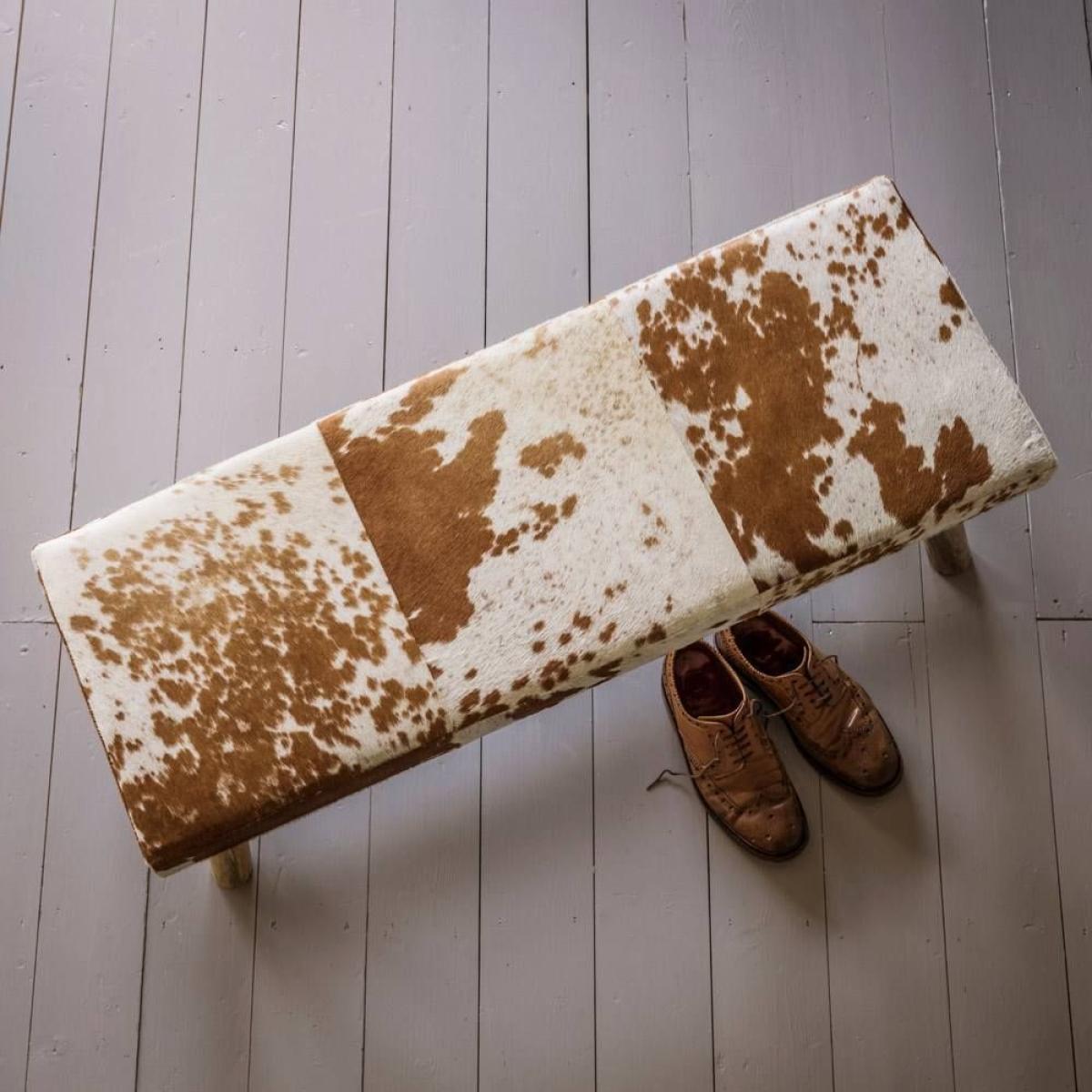 Tan and White Cowhide Bench