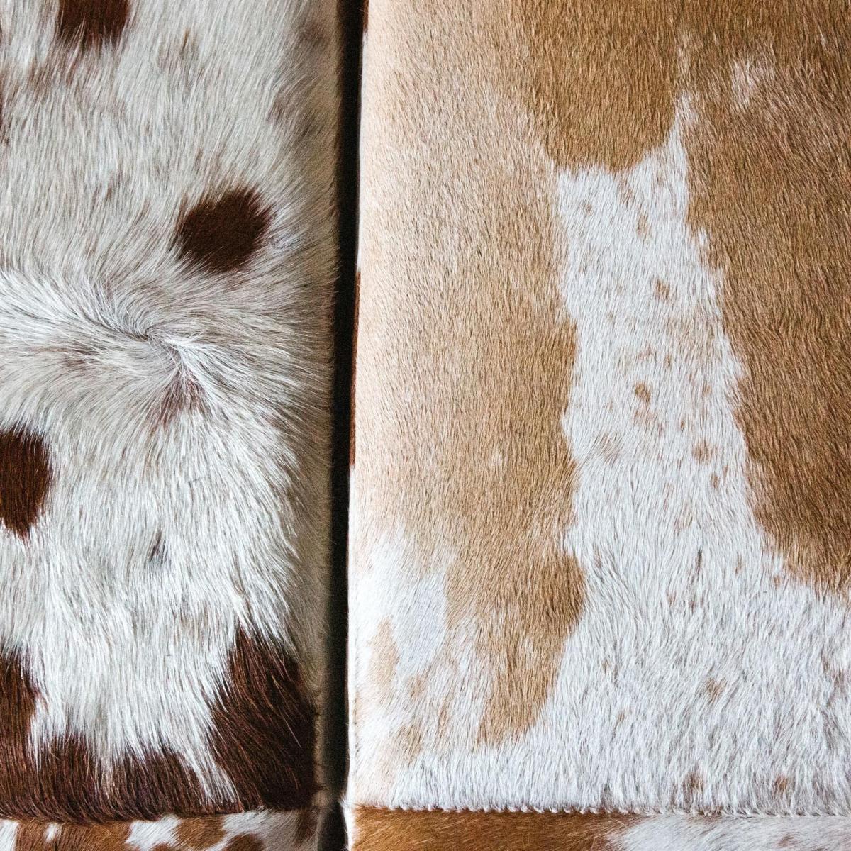 Furnish your hallway or living room with a unique piece of wooden furniture. Our Tan And White Cowhide Bench is beautifully stitched to size and upholstered in striking tan and white cowhide.