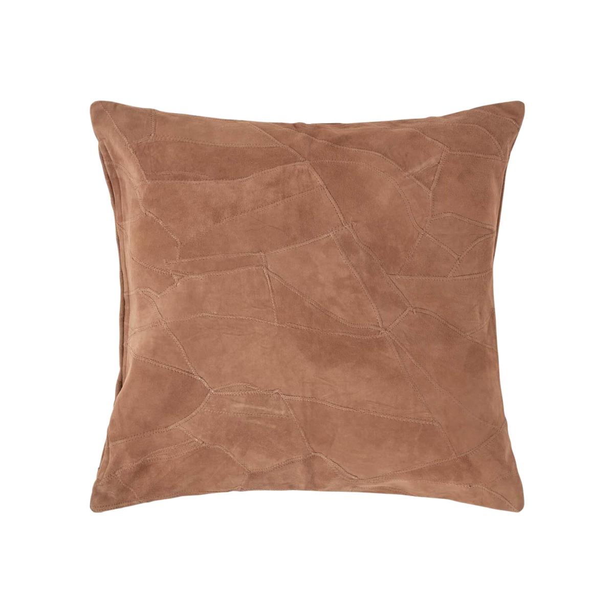 Tan Brown Real Leather Suede Cushion with Feather Filling - Tan